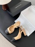GIÀY NỮ CHAN SLINGBACK GÓT VUÔNG MŨI ĐEN TONE ĐỎ RƯỢU VANG 1550k (HÀNG ORDER QUỐC TẾ)*