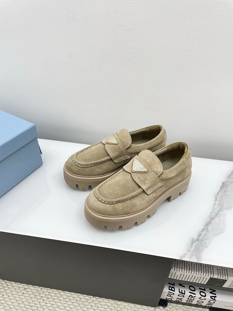 GIÀY NỮ PRAD* LOAFER TAM GIÁC VINTAGE 2025 – DA BÒ LỘN, ĐẾ DÀY TĂNG CHIỀU CAO 1750k (HÀNG ORDER QUỐC TẾ)