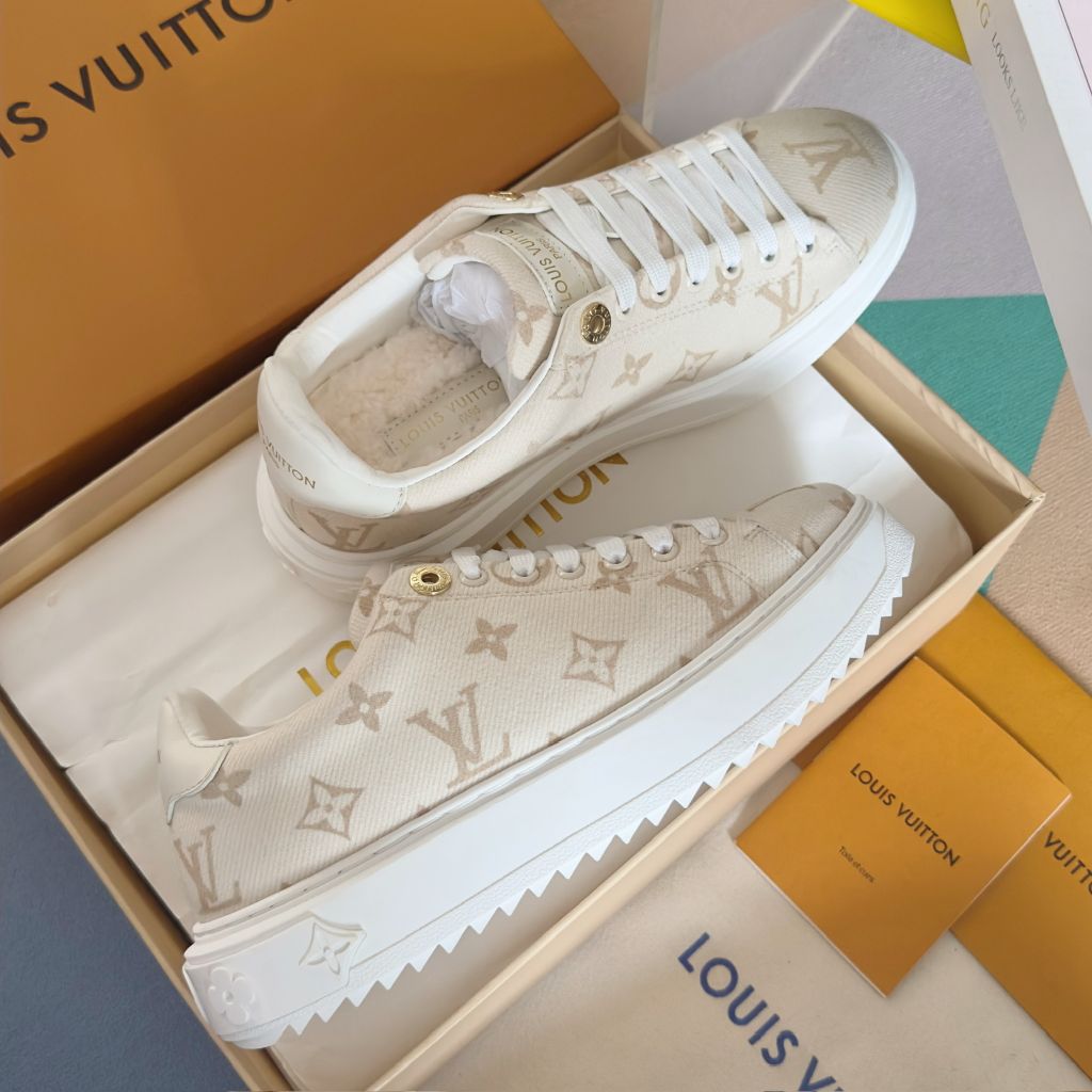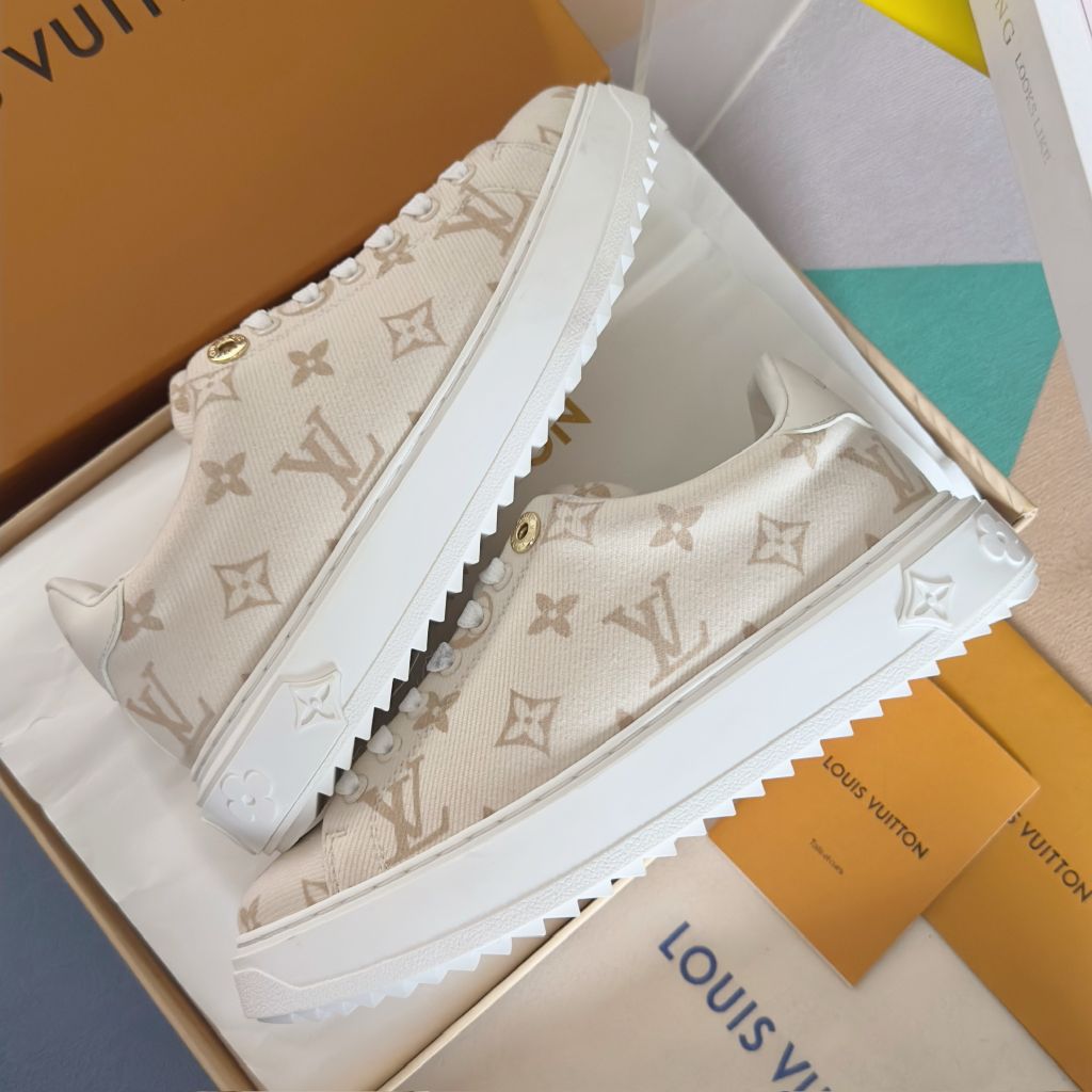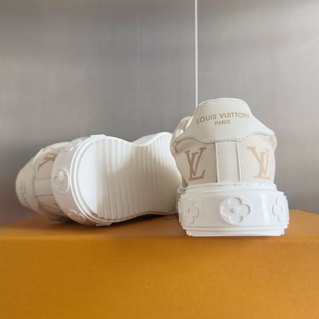 GIÀY SNEAKER NỮ L V DÒNG TIME OUT CANVAS HỌA TIẾT MONOGRAM PHỐI THÊU – ĐẾ NÂNG 4CM 1900k (HÀNG ORDER QUỐC TẾ)
