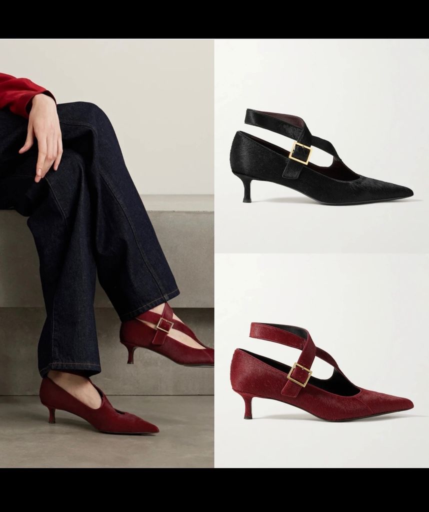 • Thân giày chất liệu lông ngựa (pony hair) đặt riêng: bề mặt mềm, lên texture tự nhiên và có chiều sâu