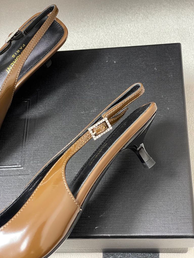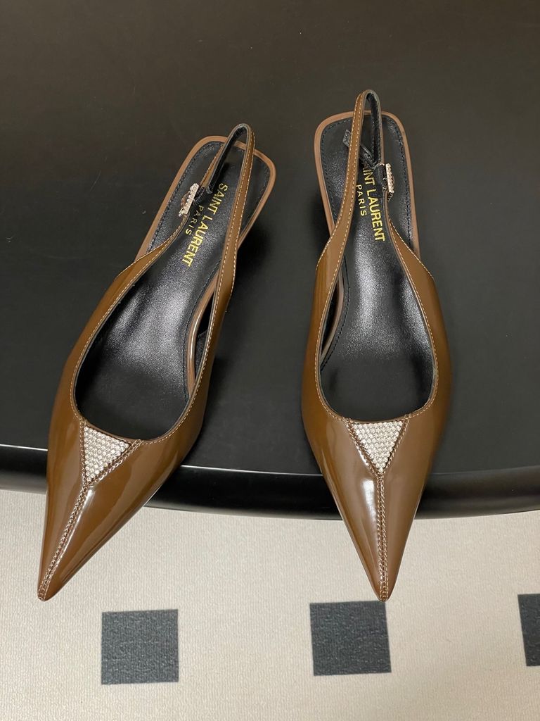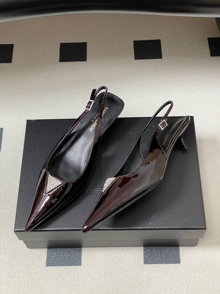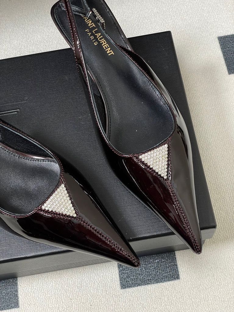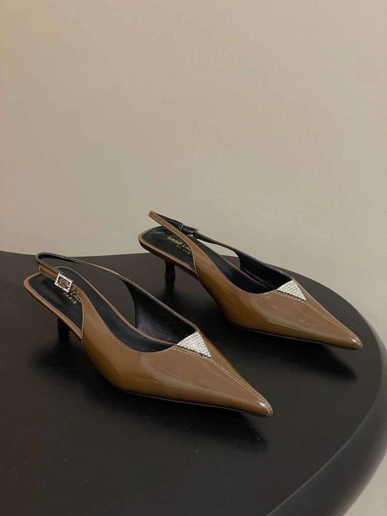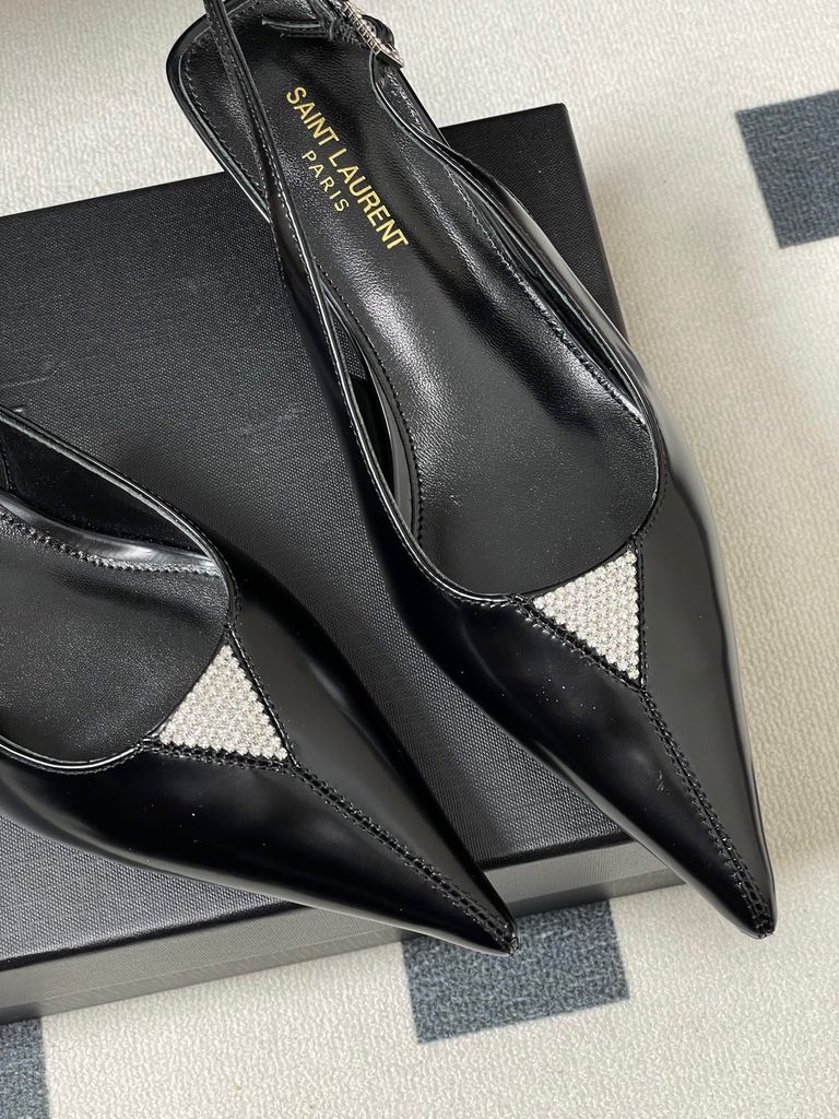 GIÀY SLINGBACK NỮ YSL MŨI NHỌN ĐÍNH ĐÁ TINH TẾ – KITTTEN HEEL 4CM THANH MẢNH, TÔN DÁNG SANG 1750k (HÀNG ORDER QUỐC TẾ)