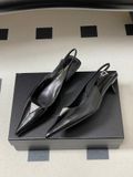 GIÀY SLINGBACK NỮ YSL MŨI NHỌN ĐÍNH ĐÁ TINH TẾ – KITTTEN HEEL 4CM THANH MẢNH, TÔN DÁNG SANG