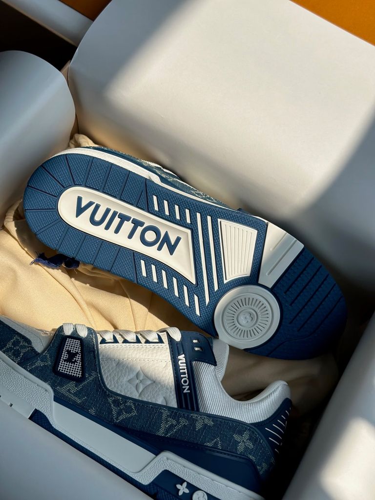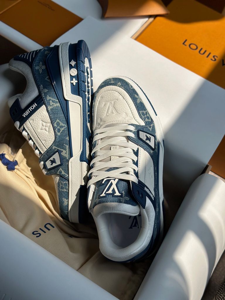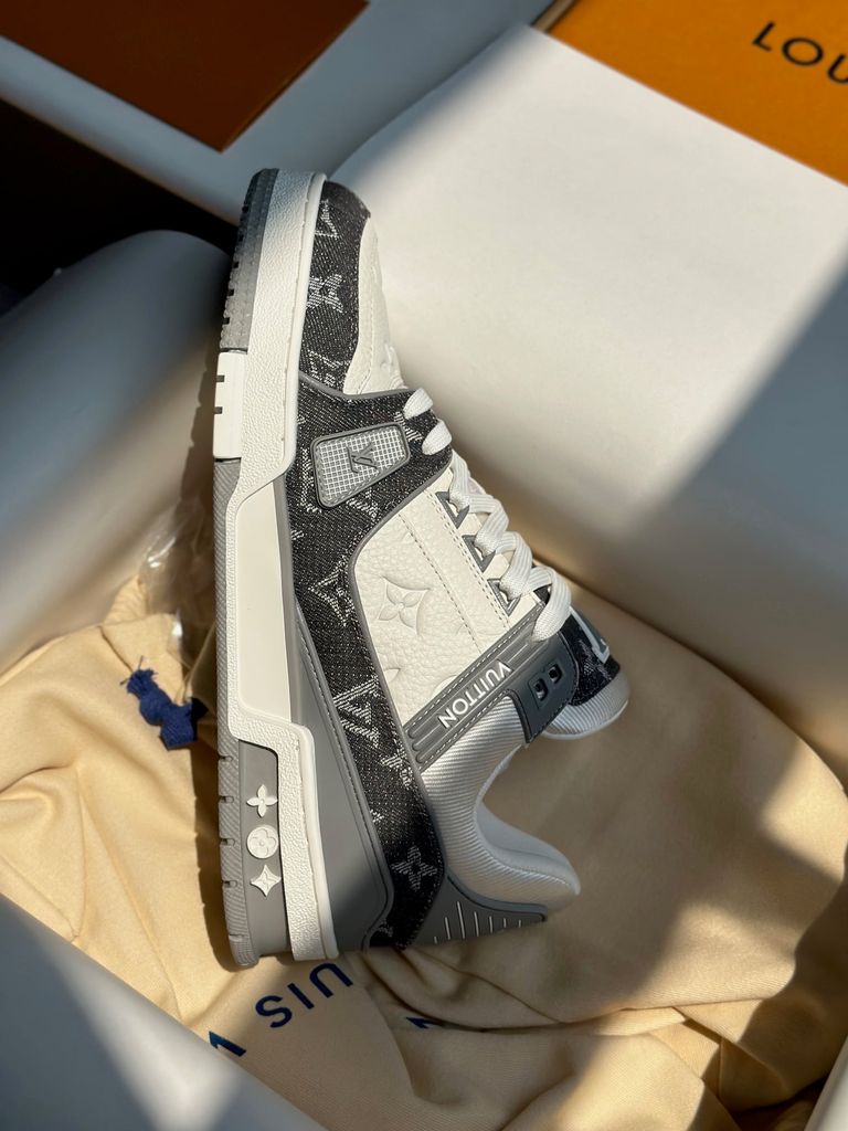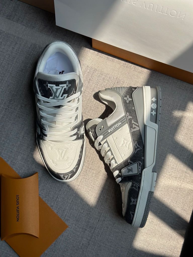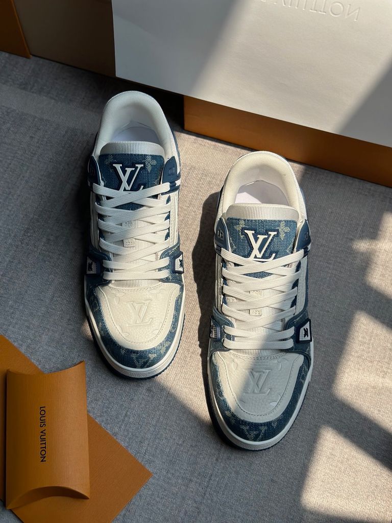 GIÀY SNEAKER NAM L V TRAINER DÁNG LOW-TOP MONOGRAM DENIM LOGO DẬP NỔI – ĐẾ 3.5CM 2550k (HÀNG ORDER QUỐC TẾ)