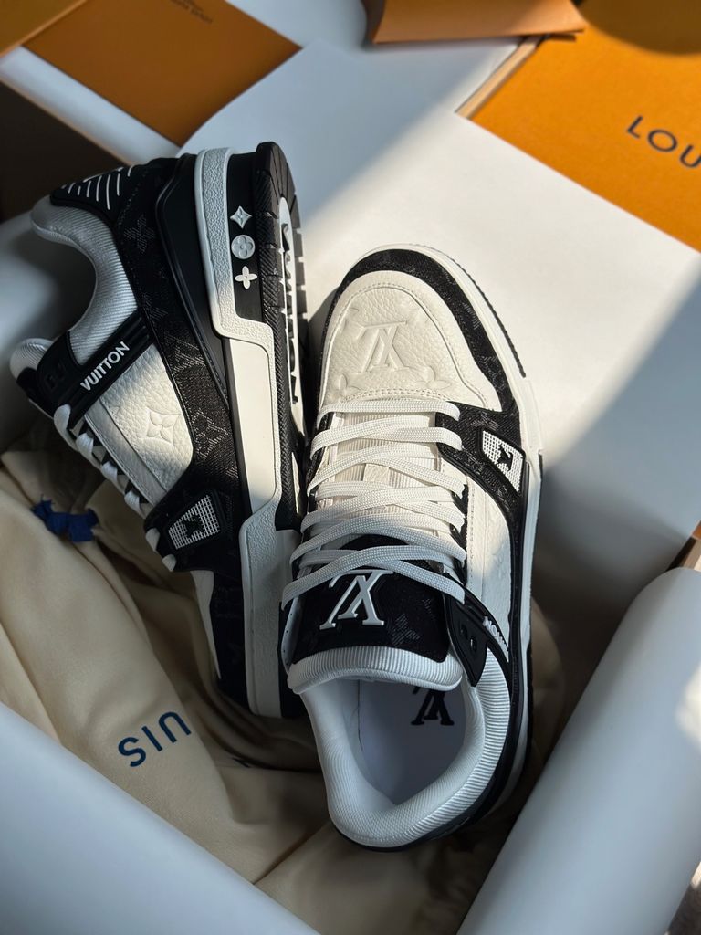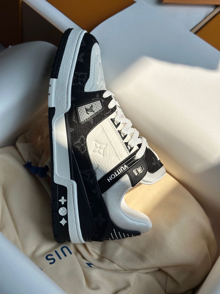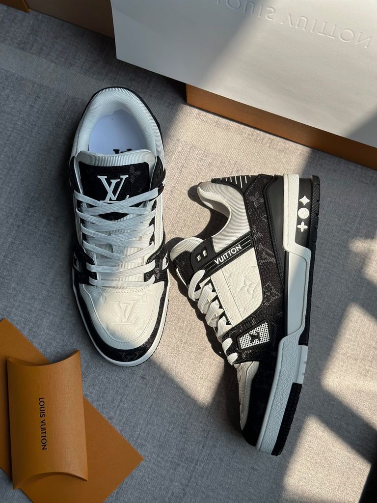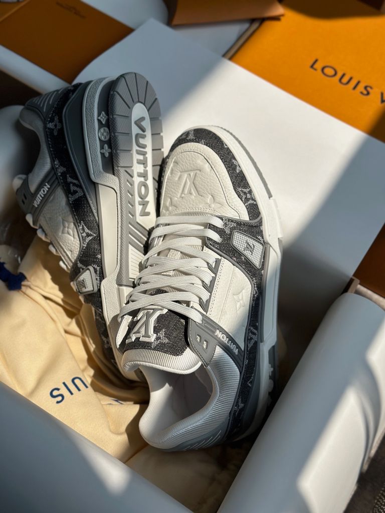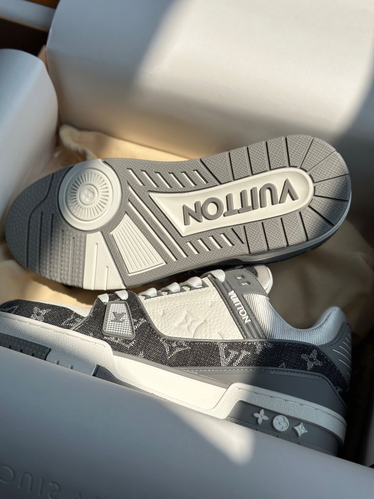 GIÀY SNEAKER NAM L V TRAINER DÁNG LOW-TOP MONOGRAM DENIM LOGO DẬP NỔI – ĐẾ 3.5CM 2550k (HÀNG ORDER QUỐC TẾ)