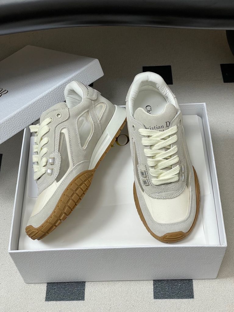 • Thân giày phối da + da lộn cùng lưới kỹ thuật trong suốt, hiệu ứng thị giác hiện đại, thoáng nhẹ.