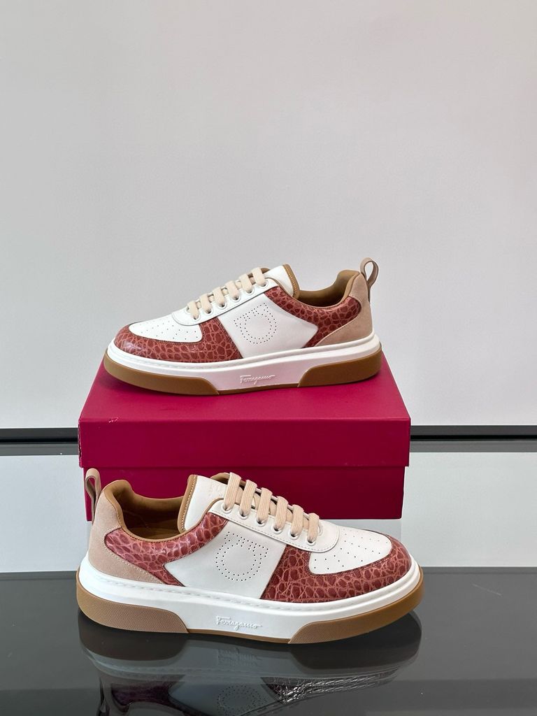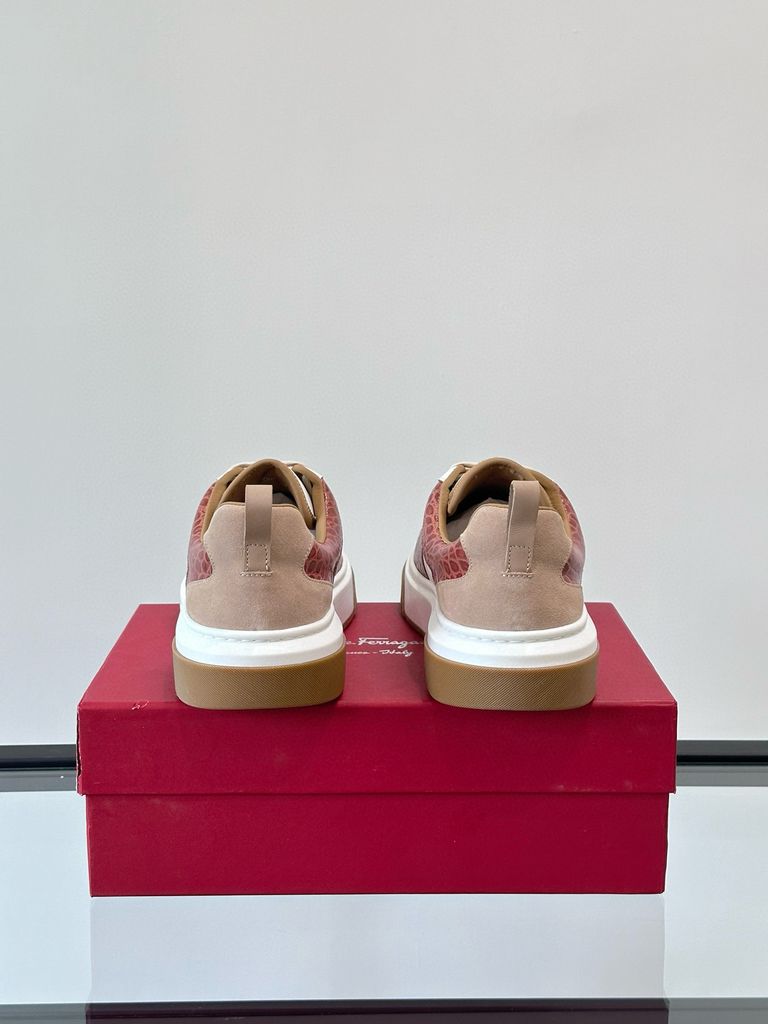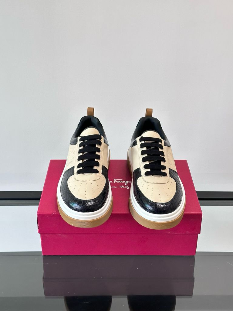 Khám phá vẻ đẹp thời thượng và sự tiện dụng vượt trội từ đôi giày sneaker nam Ferragamo mới nhất. Sự kết hợp hoàn hảo giữa chất liệu da lộn mềm mại, da bê cao cấp và lưới in hoa công nghệ cao tạo nên bề mặt ấn tượng, vừa thoáng khí lại có độ bền bỉ lâu dài. Điểm nhấn Gancini kim loại quen thuộc ở hai bên thân giày không chỉ tôn lên đẳng cấp thương hiệu mà còn mang đến nét cổ điển xen lẫn hiện đại.