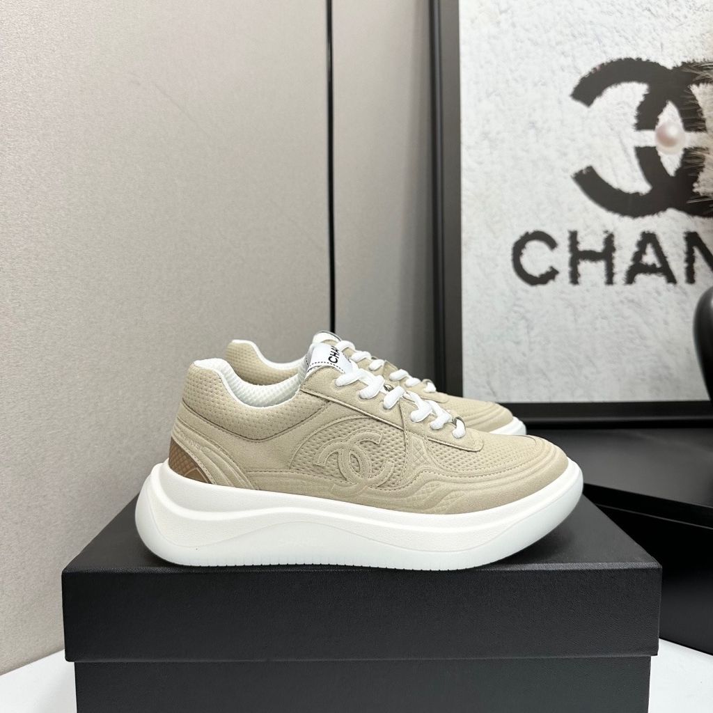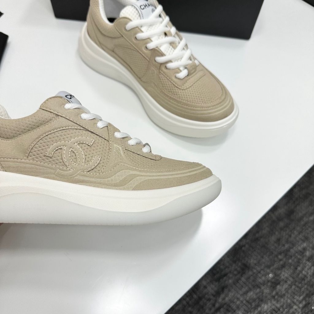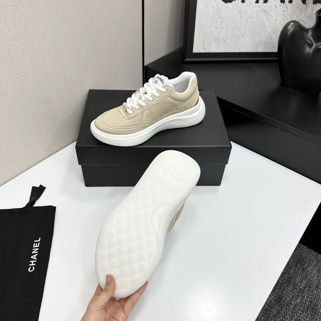 • Phần mui giày bo tròn mềm mại, dây buộc trắng tương phản làm đôi giày nổi bật trên nền be.