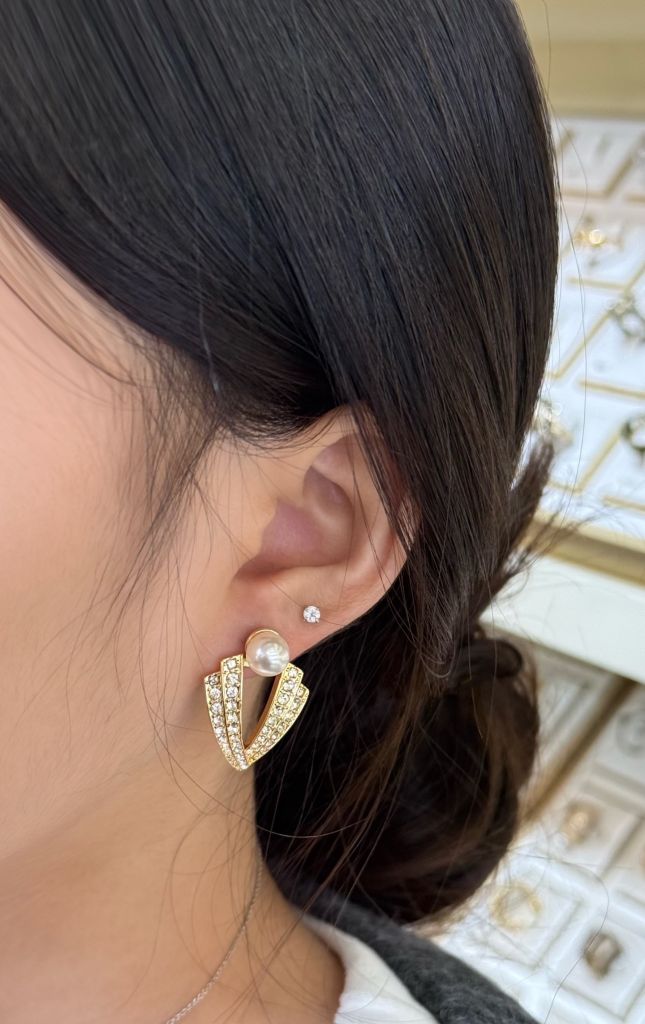 BÔNG TAI NỮ VLTN DÁNG V ĐÍNH ĐÁ & NGỌC TRAI – TINH GỌN MÀ VẪN “NHẬN DIỆN” 600k (HÀNG ORDER QUỐC TẾ)