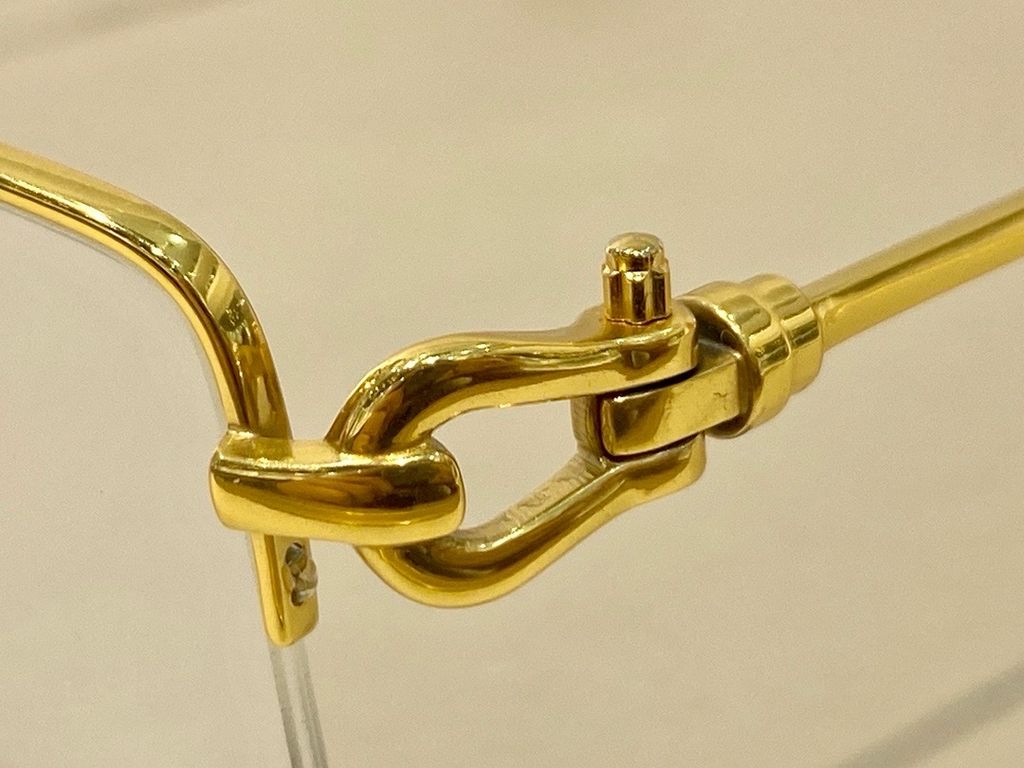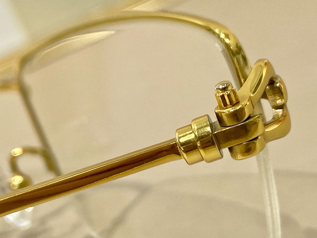 Gọng khoan titanium với chi tiết khoen nối đặc trưng ở càng kính, tổng thể tối giản nhưng rất nhận diện – đúng chất sang tinh gọn cho khách thích sự khác biệt tinh tế.