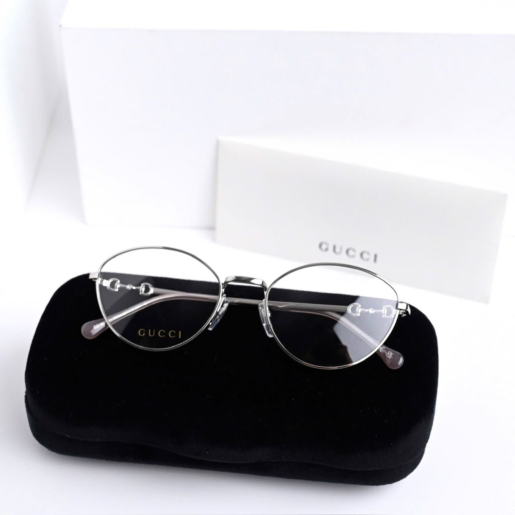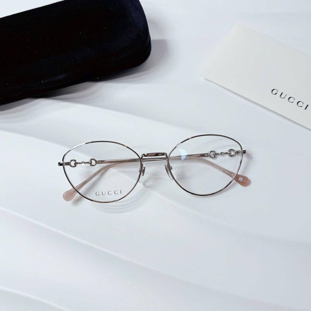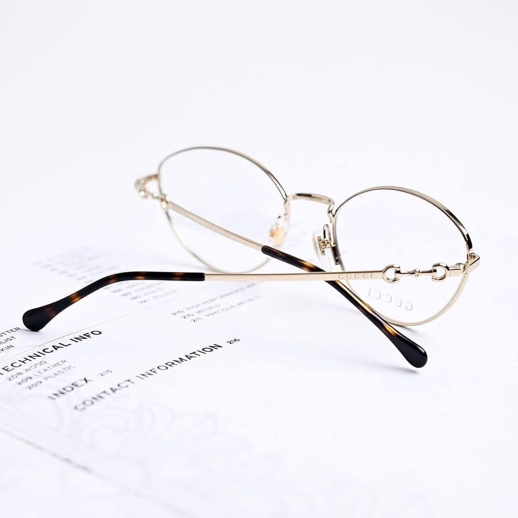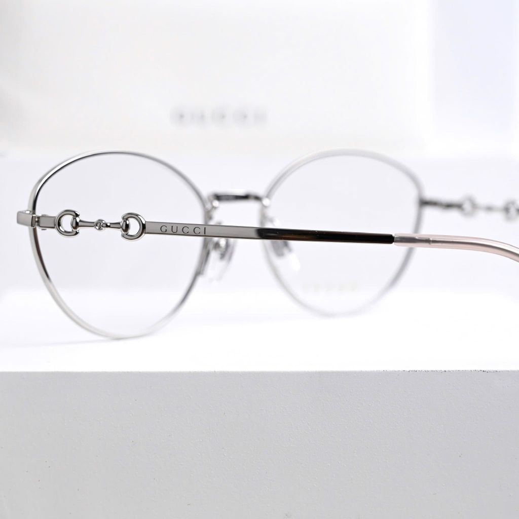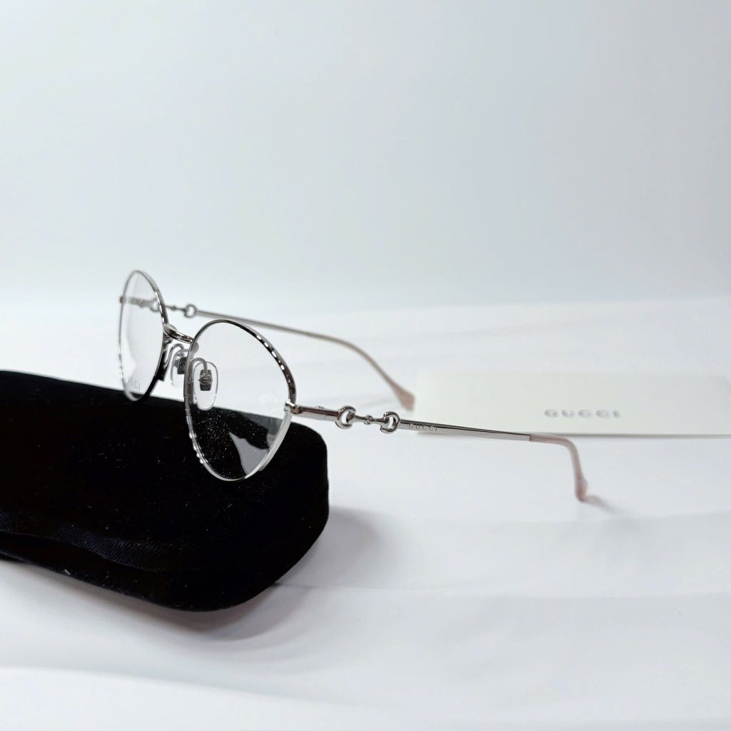Một phom kính tối giản nhưng “có dấu ấn” rõ rệt – càng kính điểm chi tiết horsebit tinh xảo tạo cảm giác sang và gọn, lên mặt rất nhẹ nhàng, dễ ứng dụng hằng ngày.