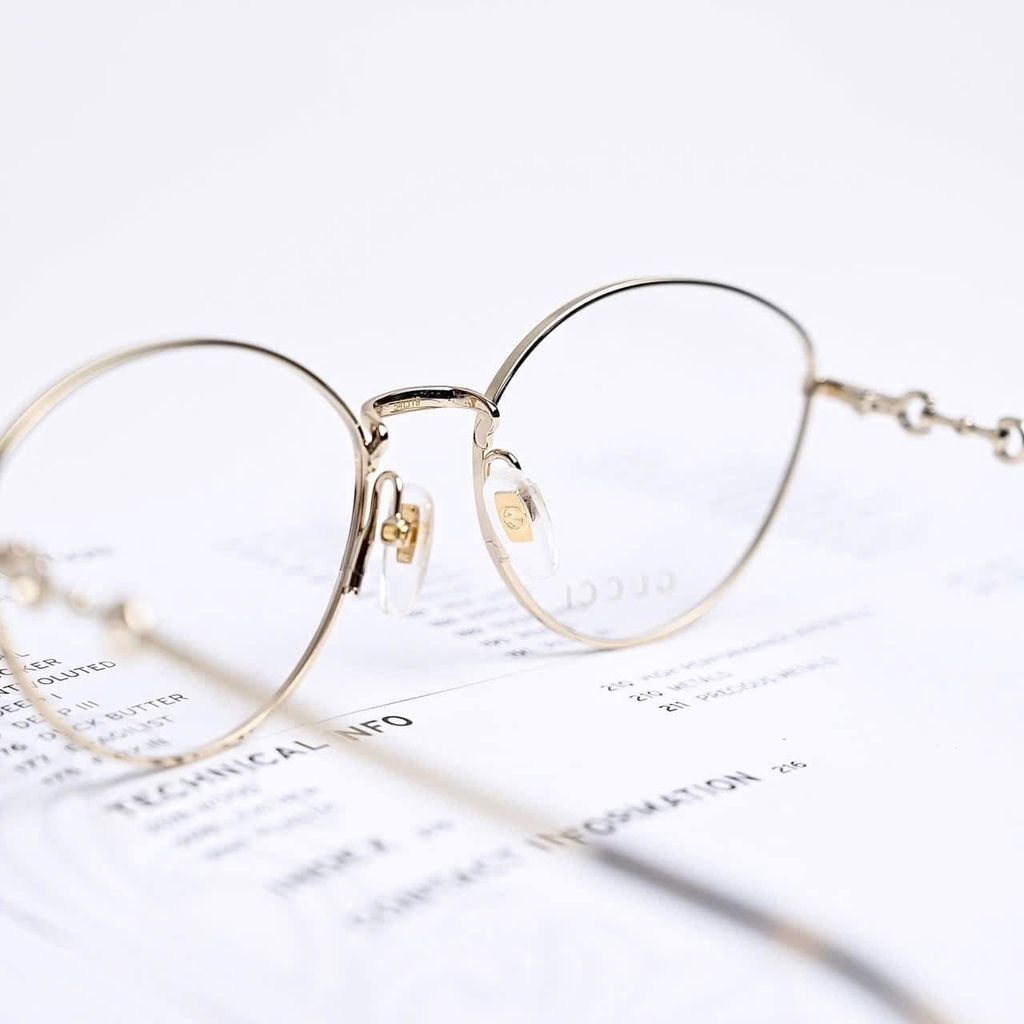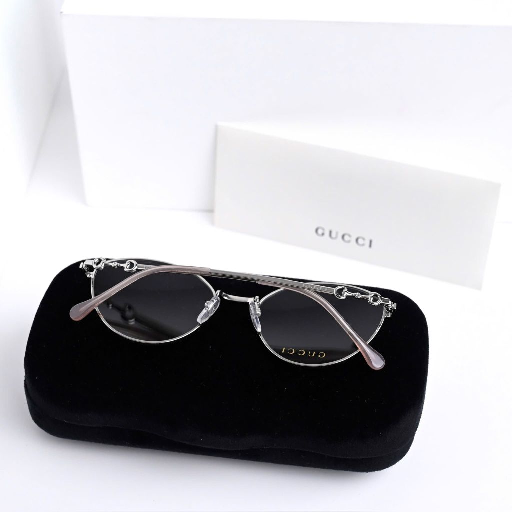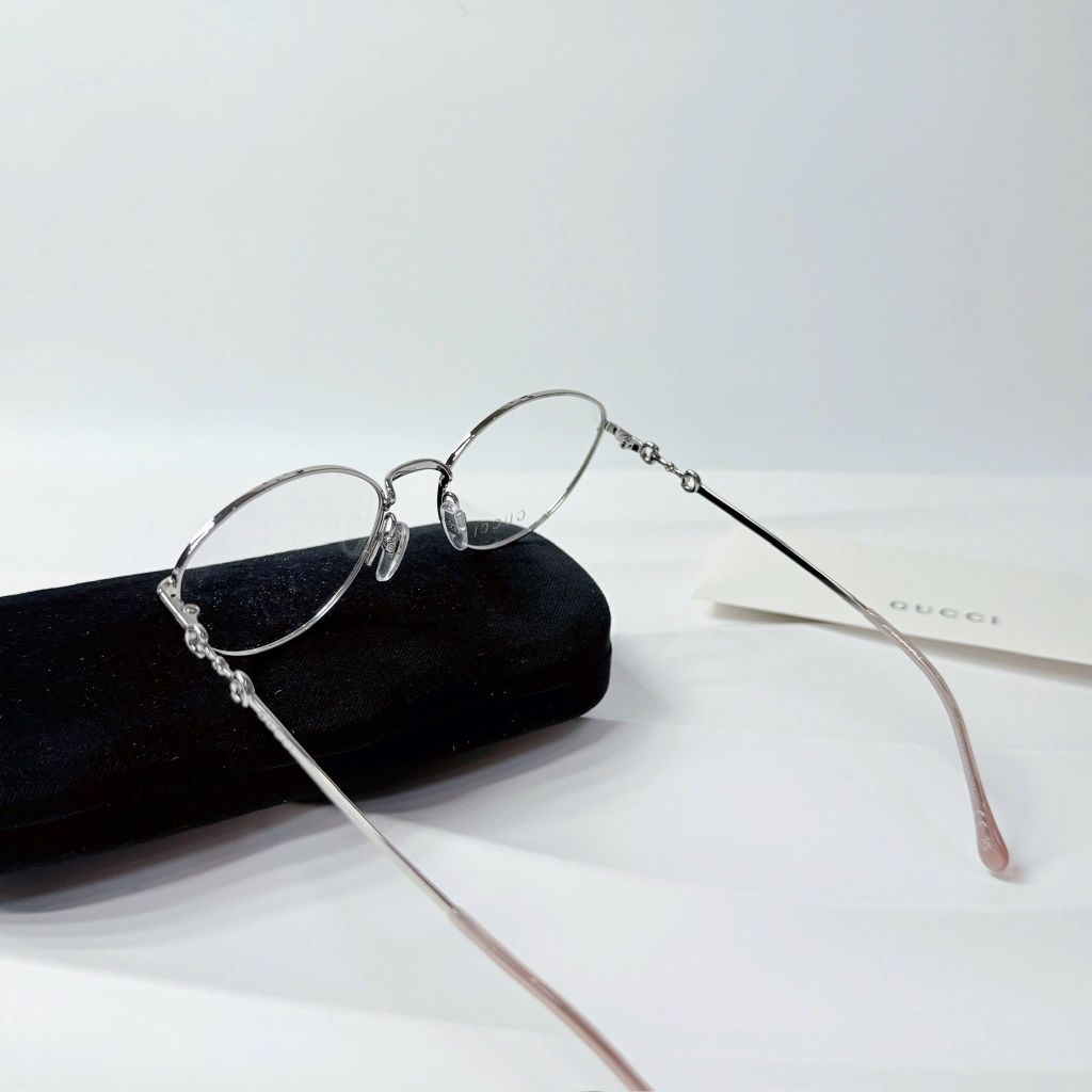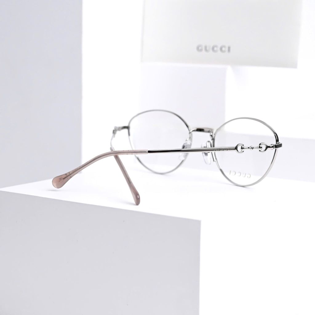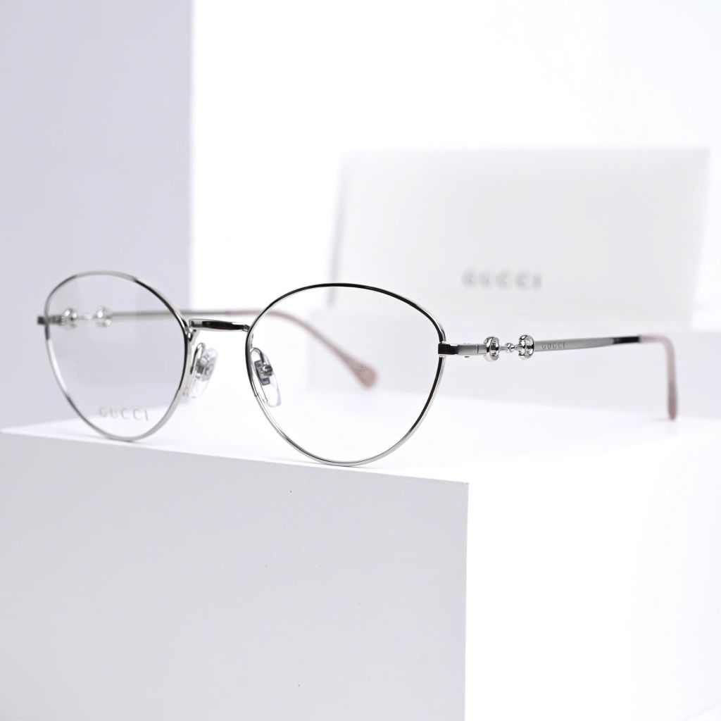 Một phom kính tối giản nhưng “có dấu ấn” rõ rệt – càng kính điểm chi tiết horsebit tinh xảo tạo cảm giác sang và gọn, lên mặt rất nhẹ nhàng, dễ ứng dụng hằng ngày.