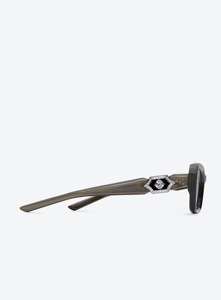 • Chi tiết huy hiệu kim loại đính đá ở càng kính: điểm nhấn nổi bật, nhìn là nhận ra ngay