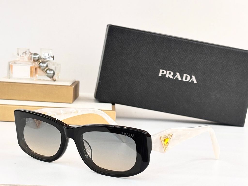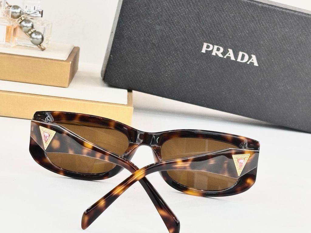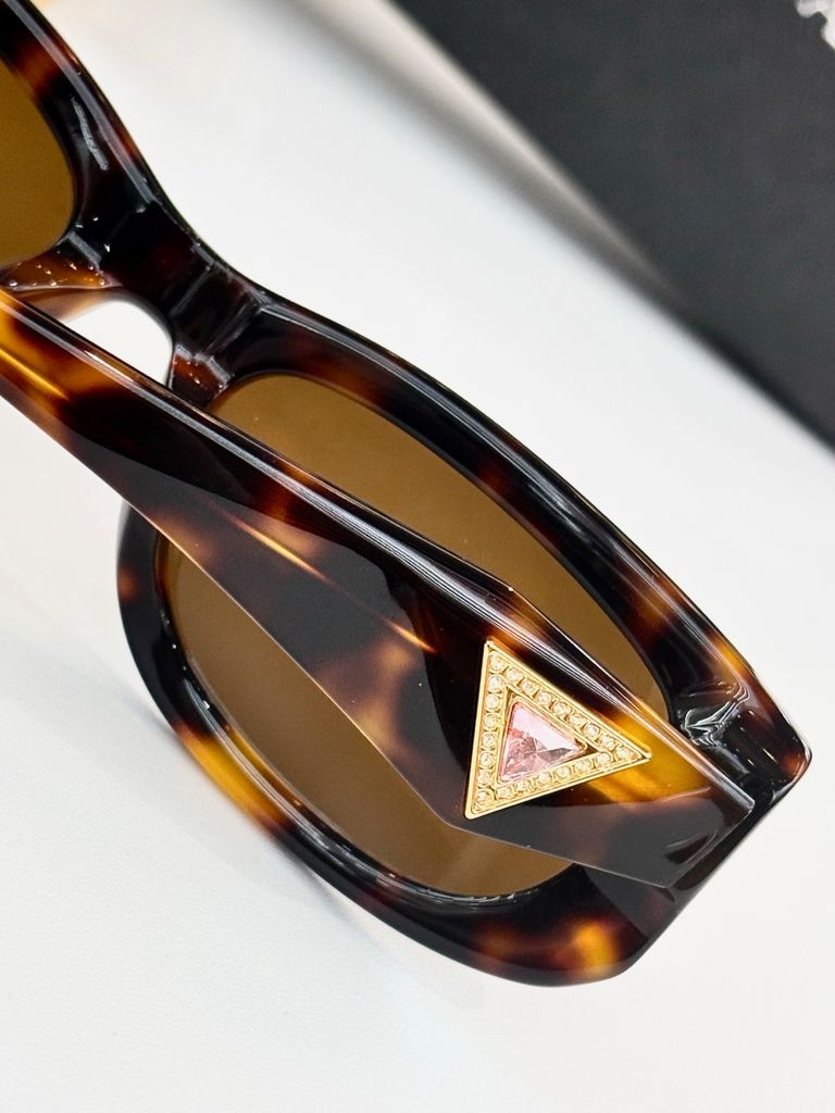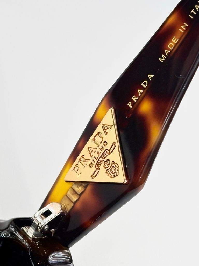 • Càng kính to bản với logo tam giác PRAD* kim loại/men nổi – chi tiết nhận diện xa cũng biết là hàng “đắt giá”.