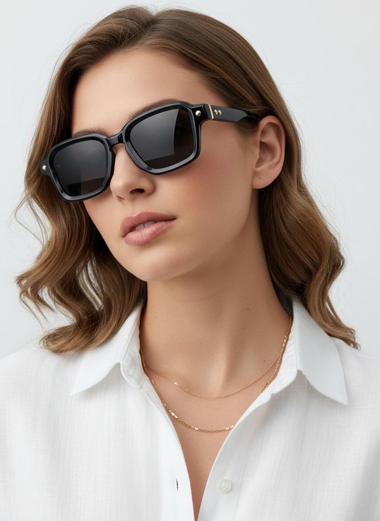 • Phom vuông oversize, đường nét dứt khoát: tôn gương mặt, tạo hiệu ứng sang và hiện đại.