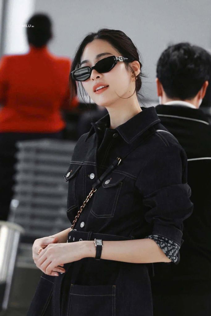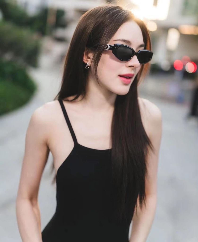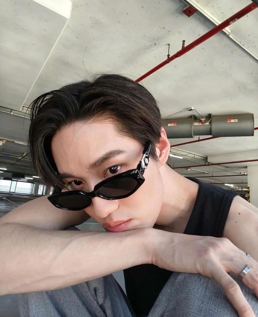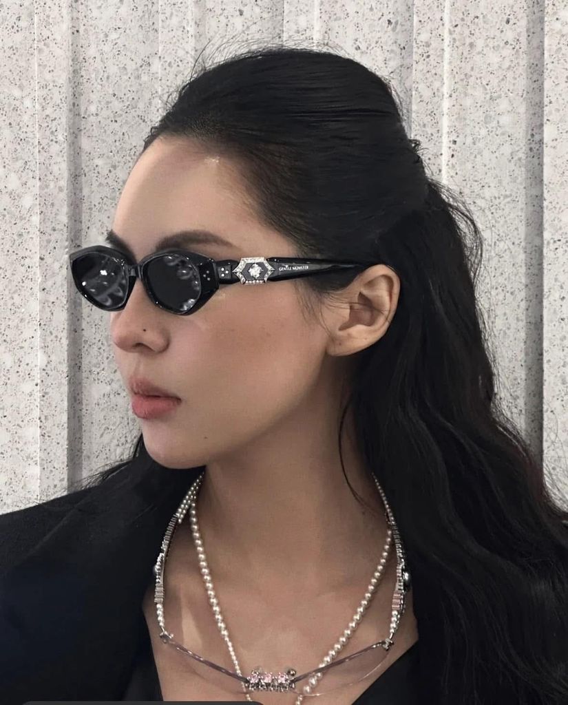 • Outfit tối giản vẫn nổi bật nhờ điểm nhấn ở càng kính, không cần phụ kiện rườm rà