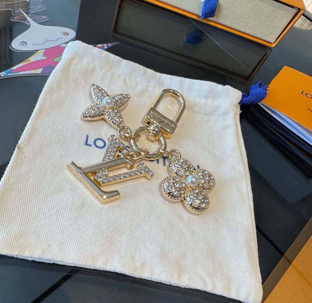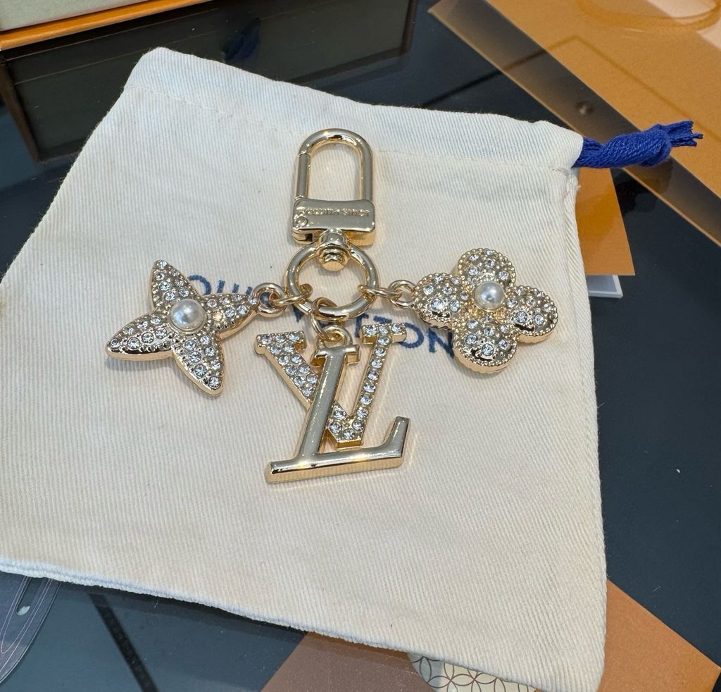 MÓC KHÓA CHARM TÚI NAM NỮ L V INITIAL LV ĐÍNH CRYSTAL HOA MONOGRAM SANG TRỌNG 550K (HÀNG ORDER QUỐC TẾ)