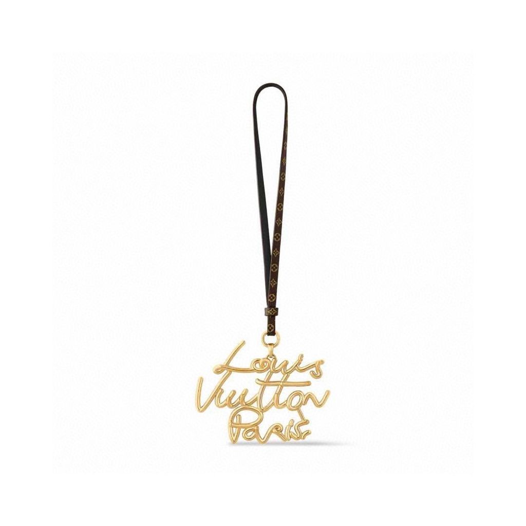 MÓC KHÓA TREO TÚI UNISEX L V PHỐI DÂY DA ĐÔI & CHARM CHỮ LV – ĐIỂM NHẤN SANG TRỌNG G STREET CHAIN ĐIỂM NHẤN MONOGRAM SANG TRỌNG