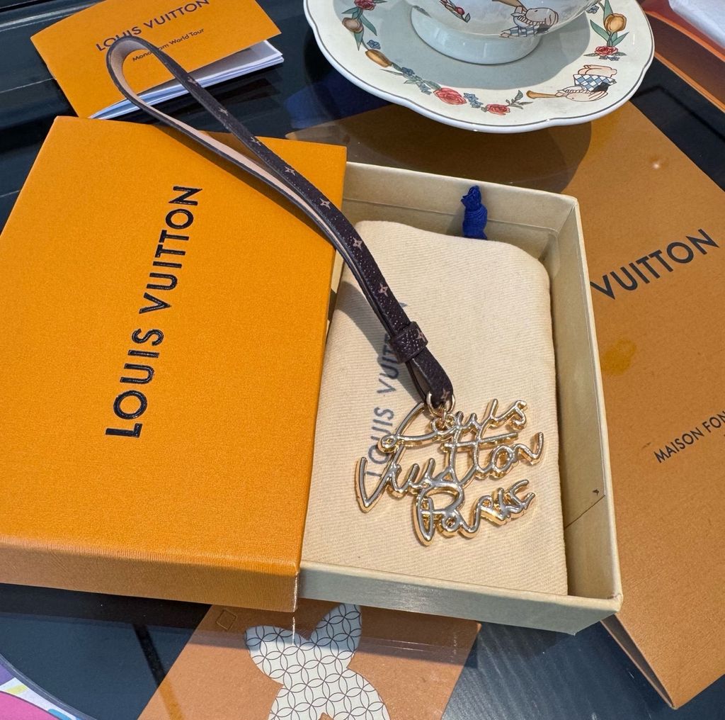 MÓC KHÓA TREO TÚI UNISEX L V PHỐI DÂY DA ĐÔI & CHARM CHỮ LV – ĐIỂM NHẤN SANG TRỌNG, TẠO CHẤT RIÊNG 550k (HÀNG ORDER QUỐC TẾ)