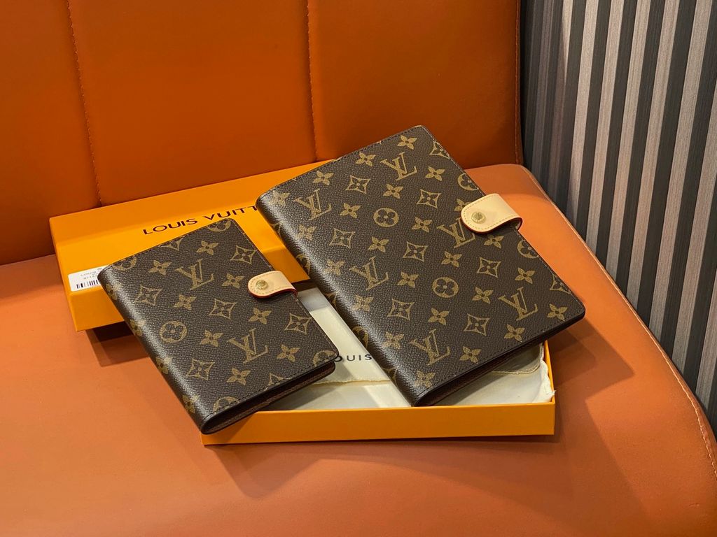 BÌA SỔ TAY/NOTEBOOK COVER UNISEX L V* TAIGA DẬP VÂN PHỐI MONOGRAM – KHÓA BẤM THANH LỊCH 1450k (HÀNG ORDER QUỐC TẾ)
