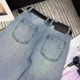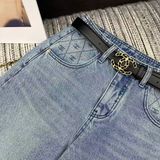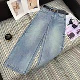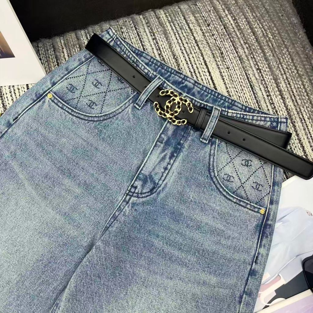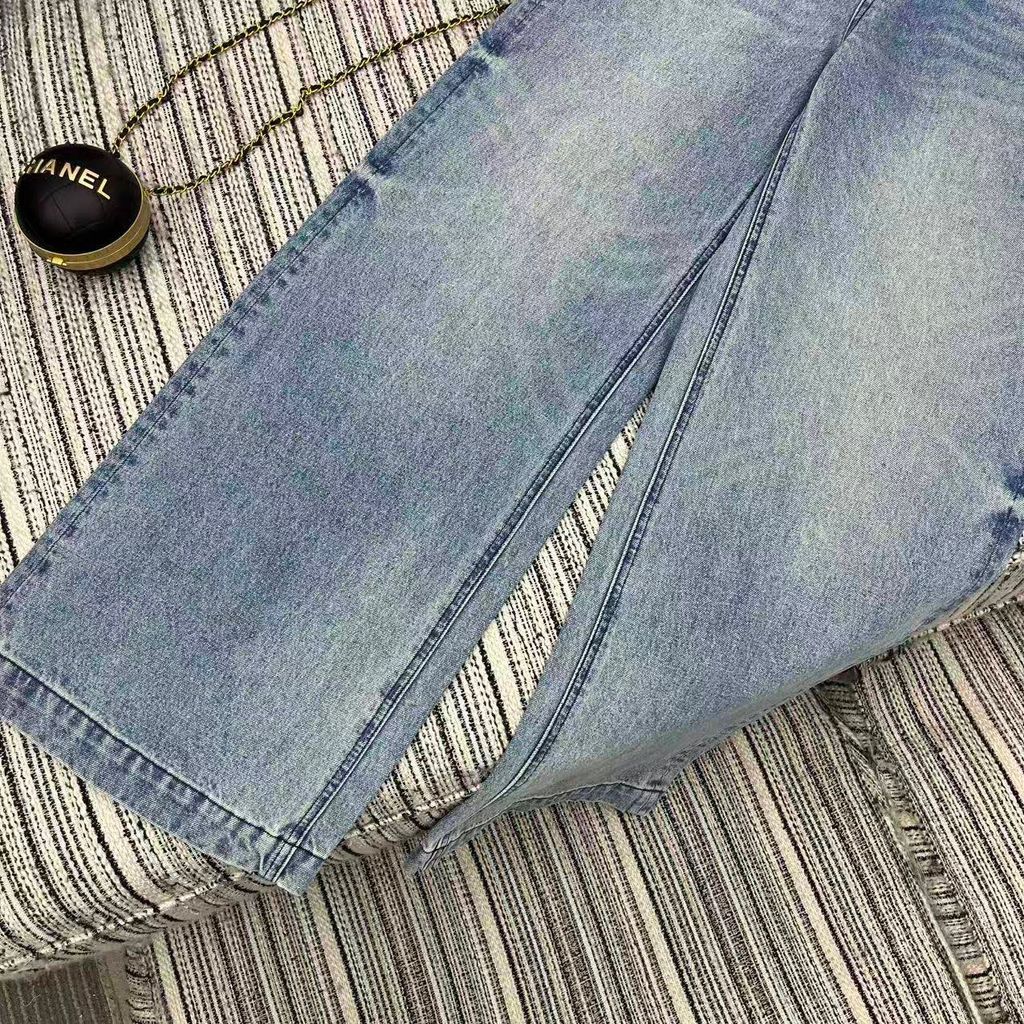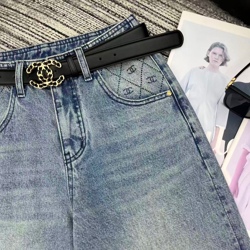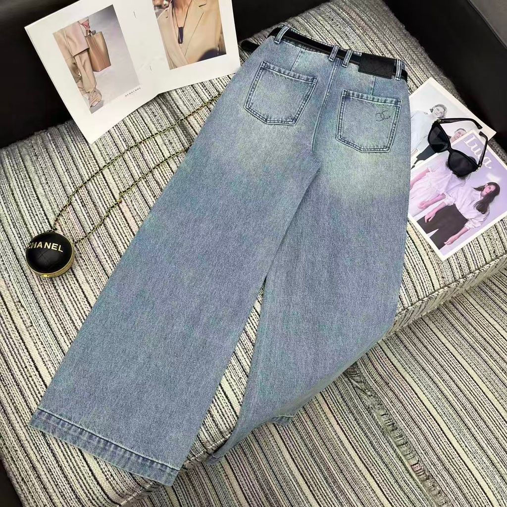 QUẦN JEAN NỮ CHA* ỐNG ĐỨNG WASH XANH ĐÍNH ĐÁ LOGO C ĐÔI, KÈM THẮT LƯNG DA SANG TRỌNG 1150k (HÀNG ORDER QUỐC TẾ)