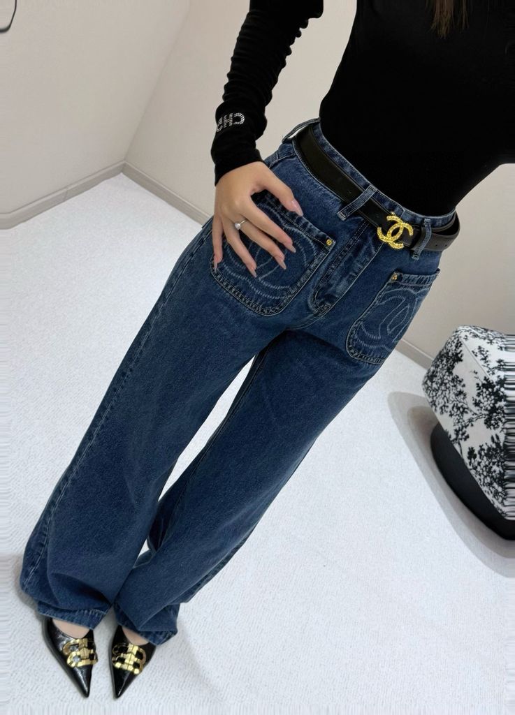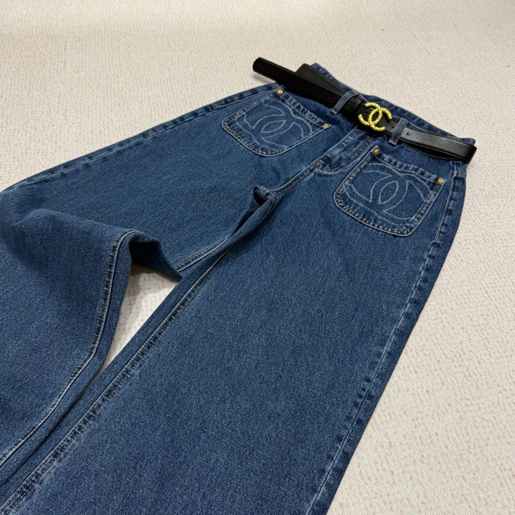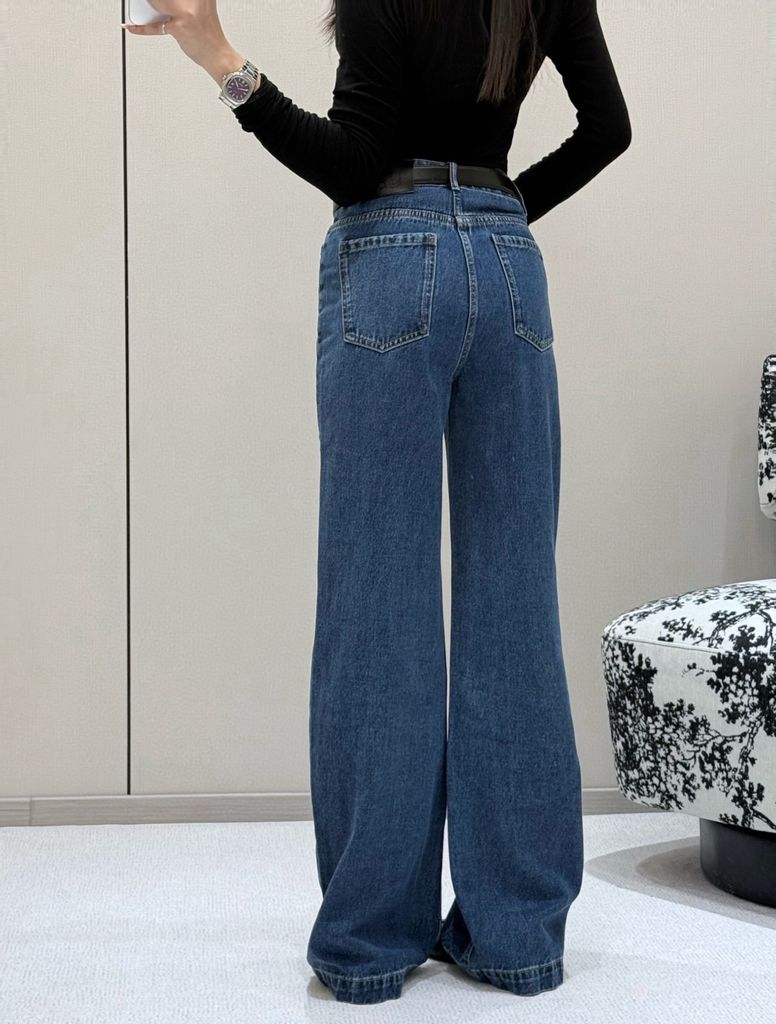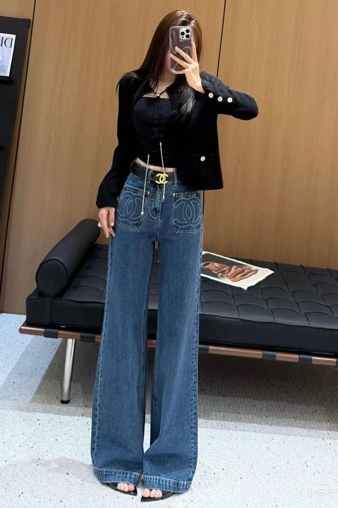 QUẦN JEANS NỮ CHA PHIÊN BẢN l – THÊU LOGO TÚI ĐÔI, DÁNG ỐNG SUÔNG (HÀNG ORDER QUỐC TẾ)