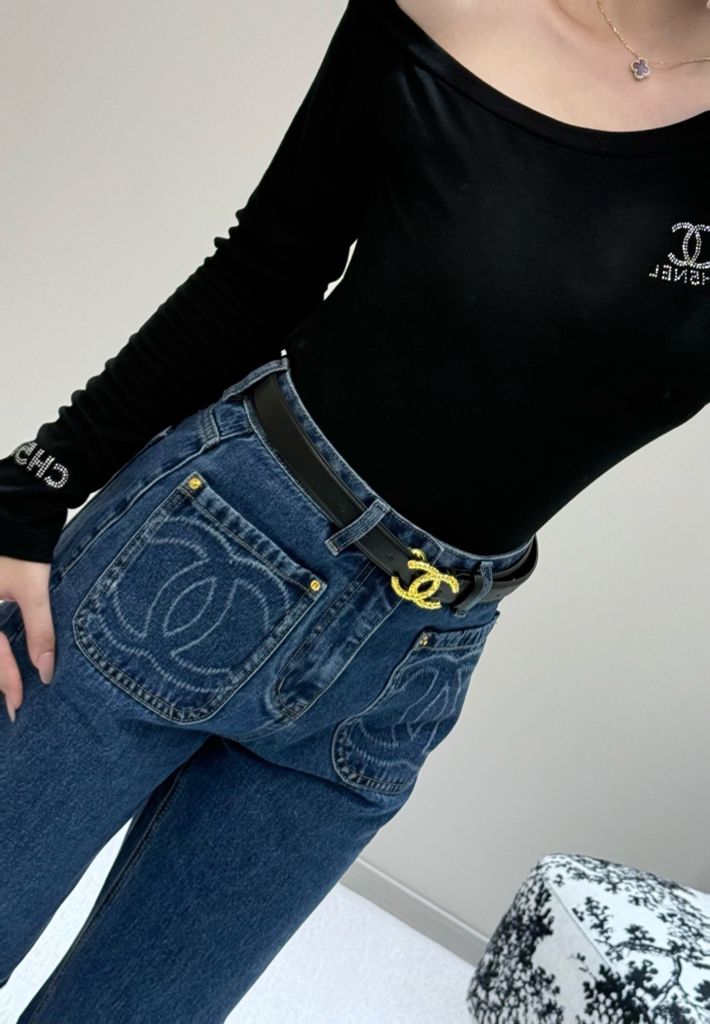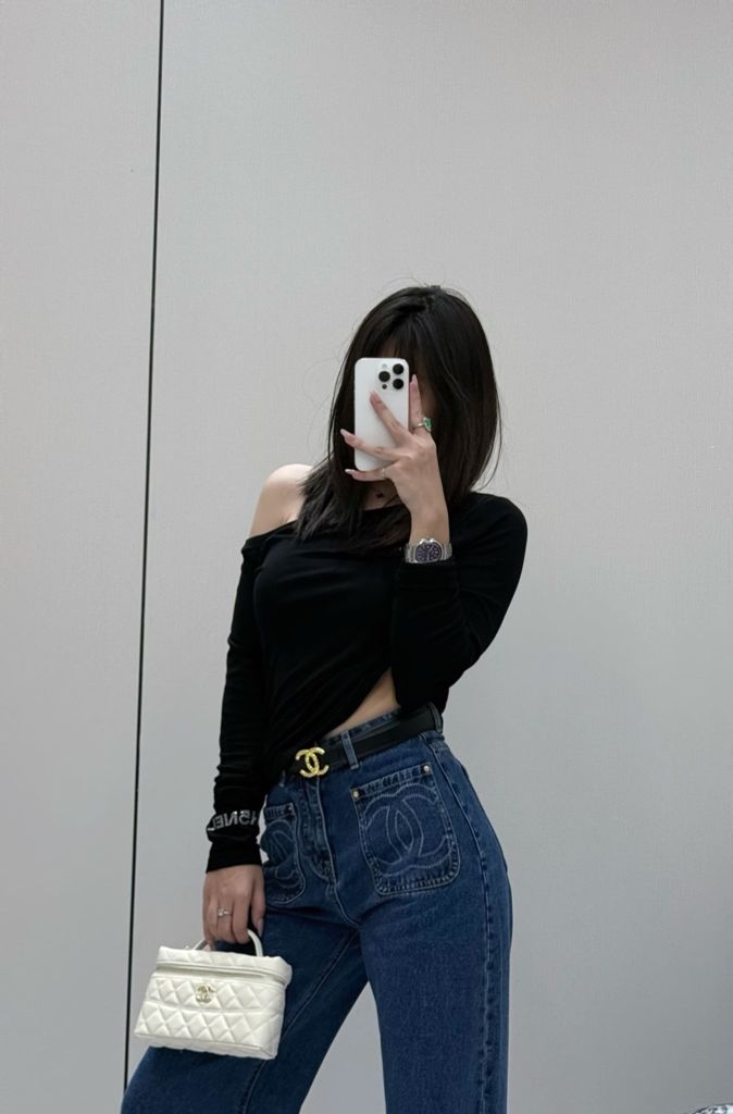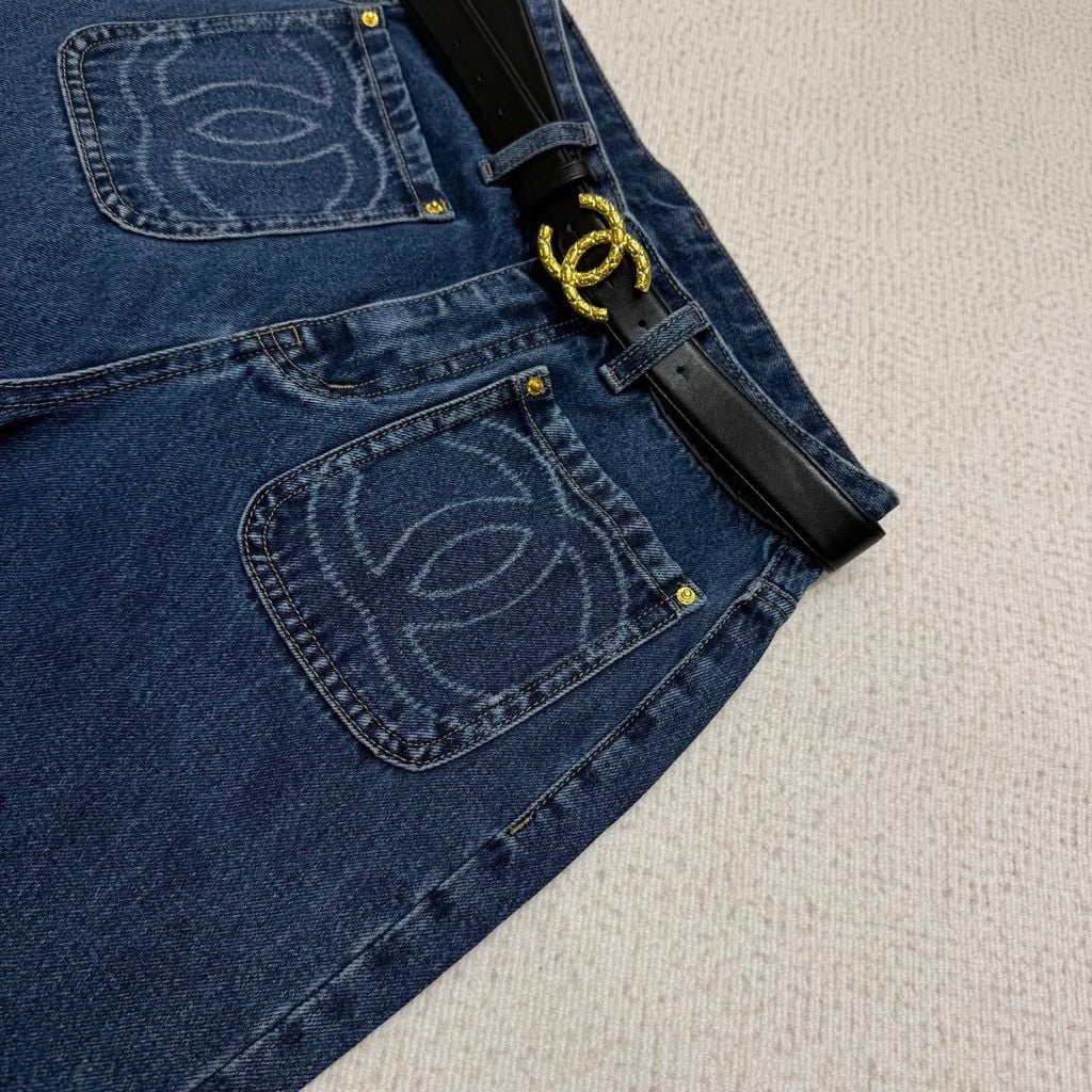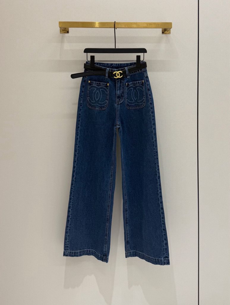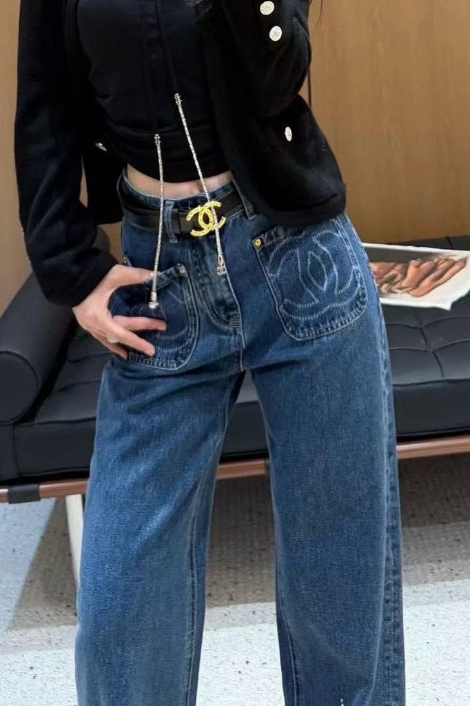 QUẦN JEANS NỮ CHA PHIÊN BẢN l – THÊU LOGO TÚI ĐÔI, DÁNG ỐNG SUÔNG (HÀNG ORDER QUỐC TẾ)