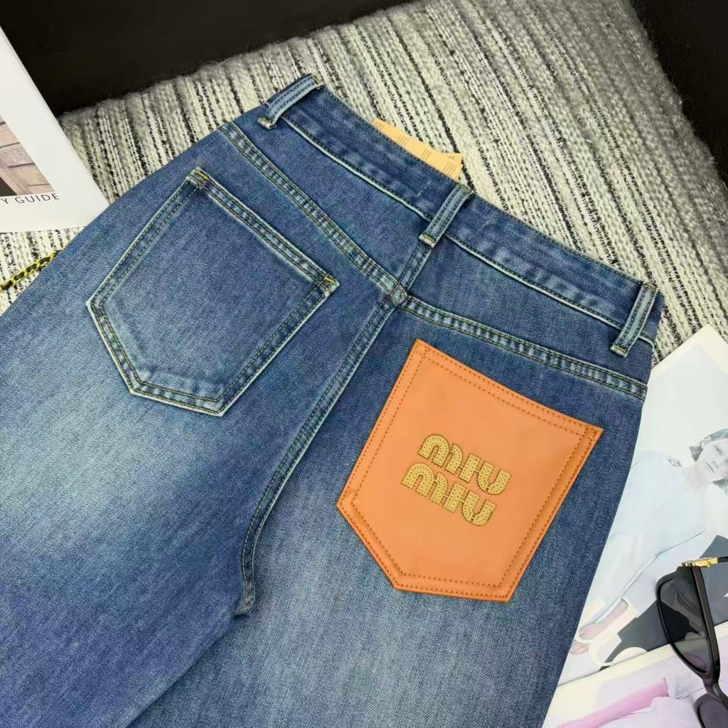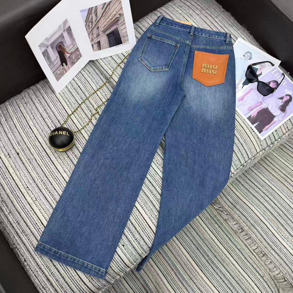 QUẦN JEANS NỮ MIU* ỐNG ĐỨNG TEM DA LƯNG SAU WASH ĐẸP 1100K (HÀNG ORDER QUỐC TẾ)