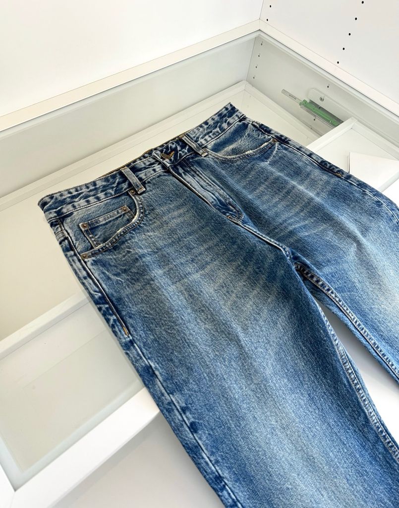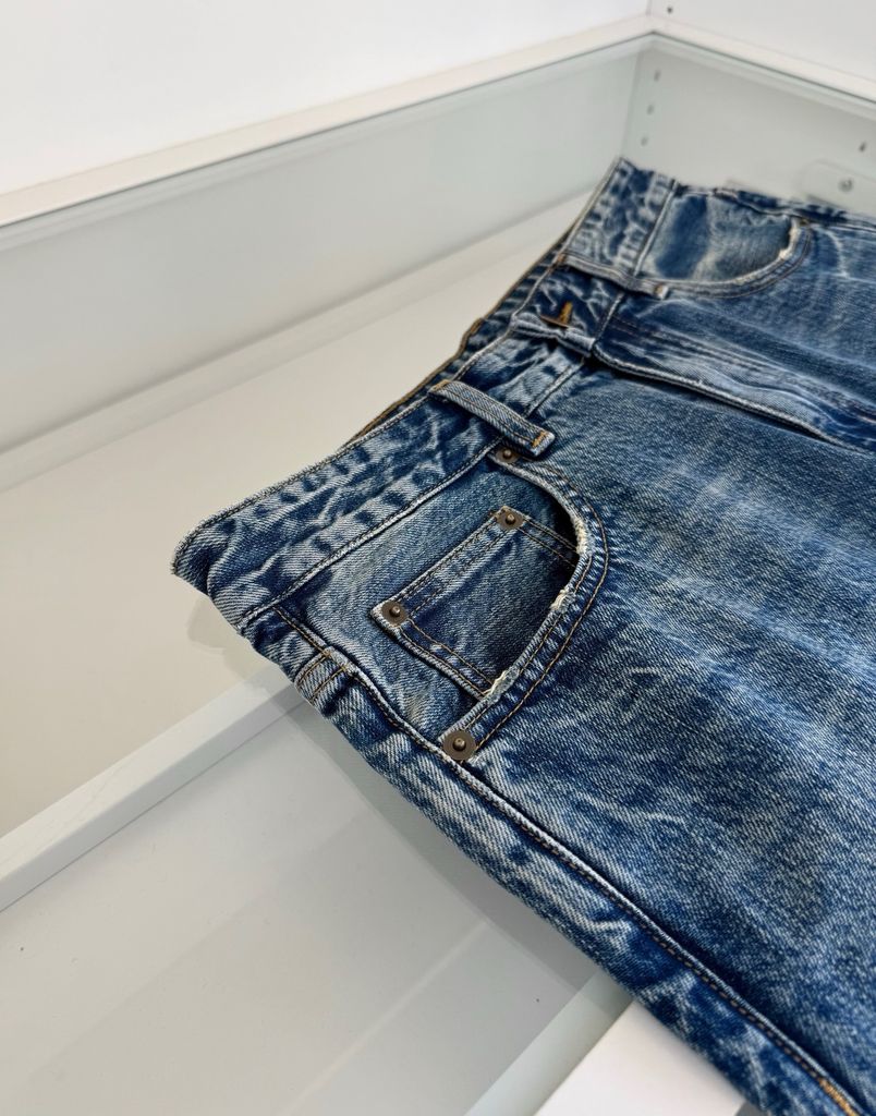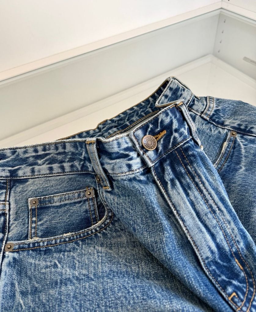 Một chiếc jeans “đúng gu” nam tính: phom đứng gọn gàng, wash tự nhiên nhìn rất có chiều sâu, mặc lên ra dáng ngay cả khi phối đơn giản.