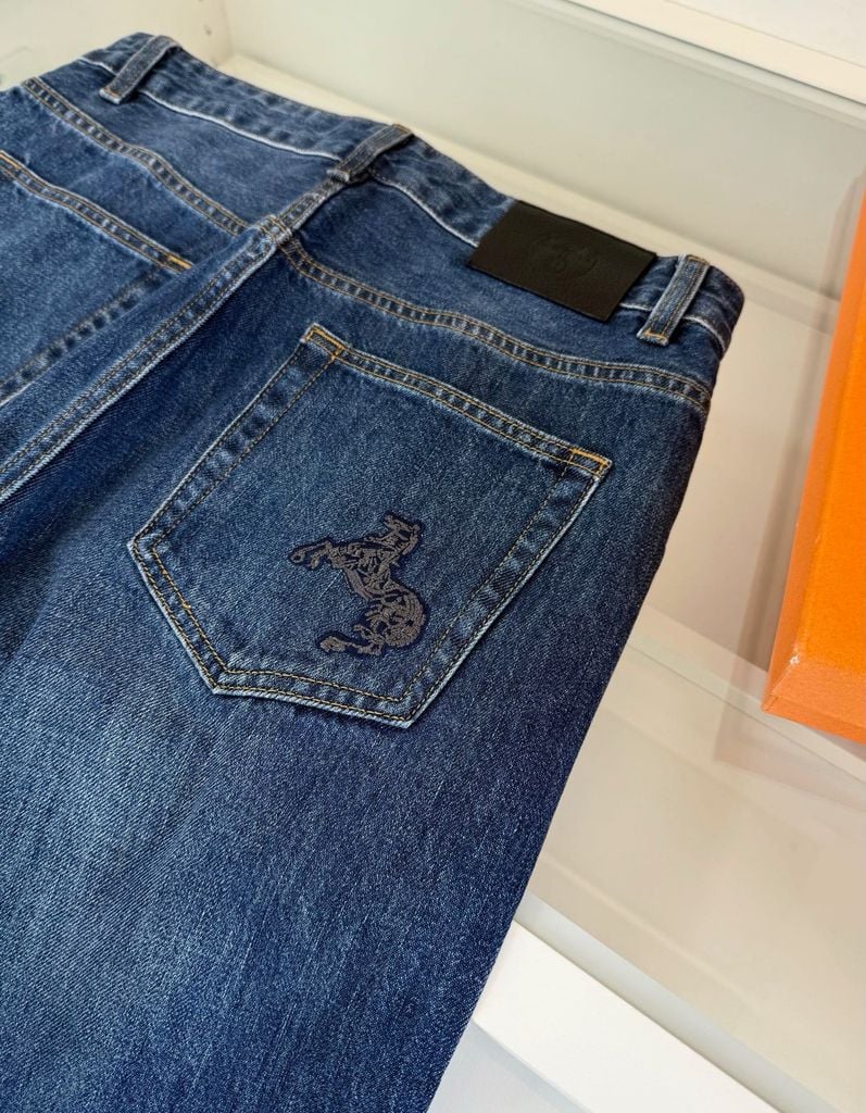 QUẦN JEANS NAM H M PHOM ỐNG ĐỨNG HƠI LOE TÔN DÁNG – THÊU NGỰA BIỂU TƯỢNG, WASH HIỆU ỨNG CỰC ĐẸP 1450k (HÀNG ORDER QUỐC TẾ)