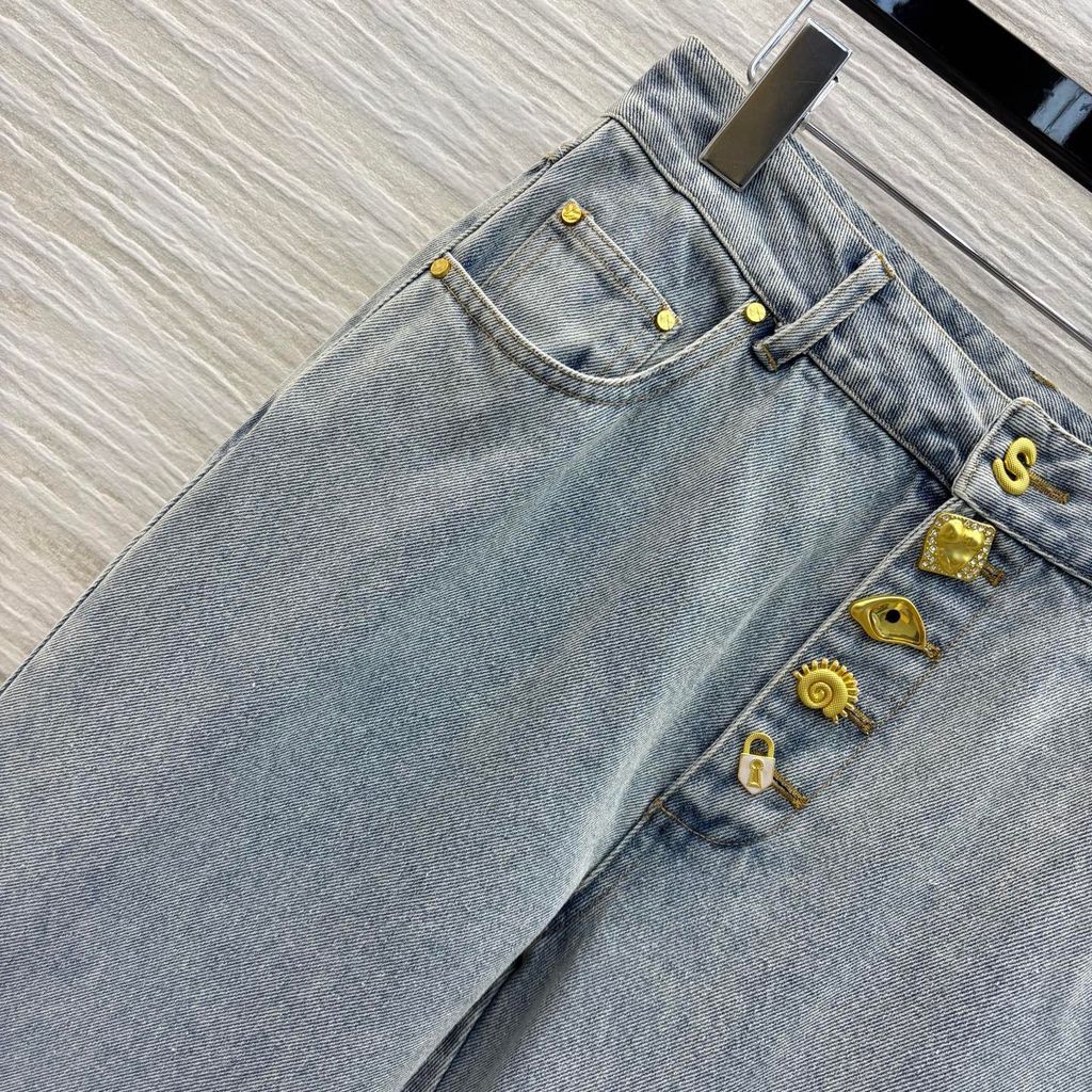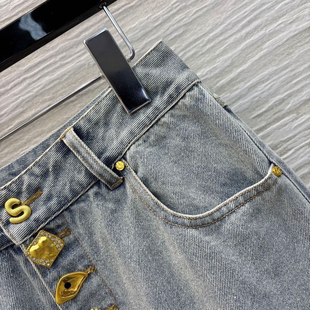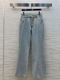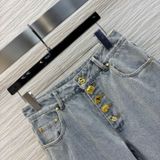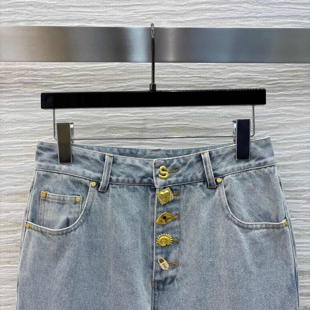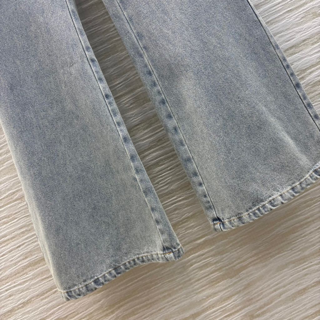 QUẦN JEANS NỮ SCH CÚC VÀNG BẤT ĐỐI XỨNG ỐNG LOE NHẸ SIÊU TÔN CHIỀU CAO 1850K (HÀNG ORDER QUỐC TẾ)*