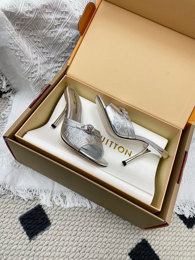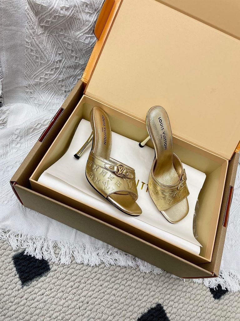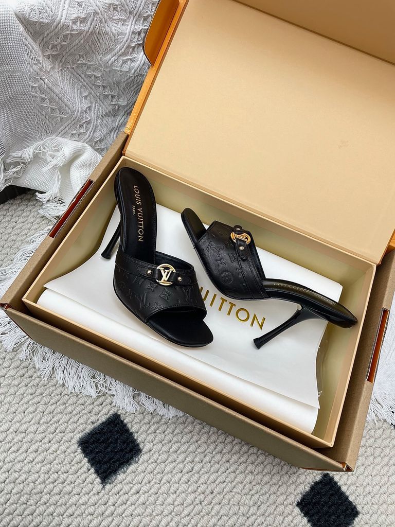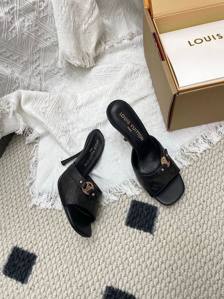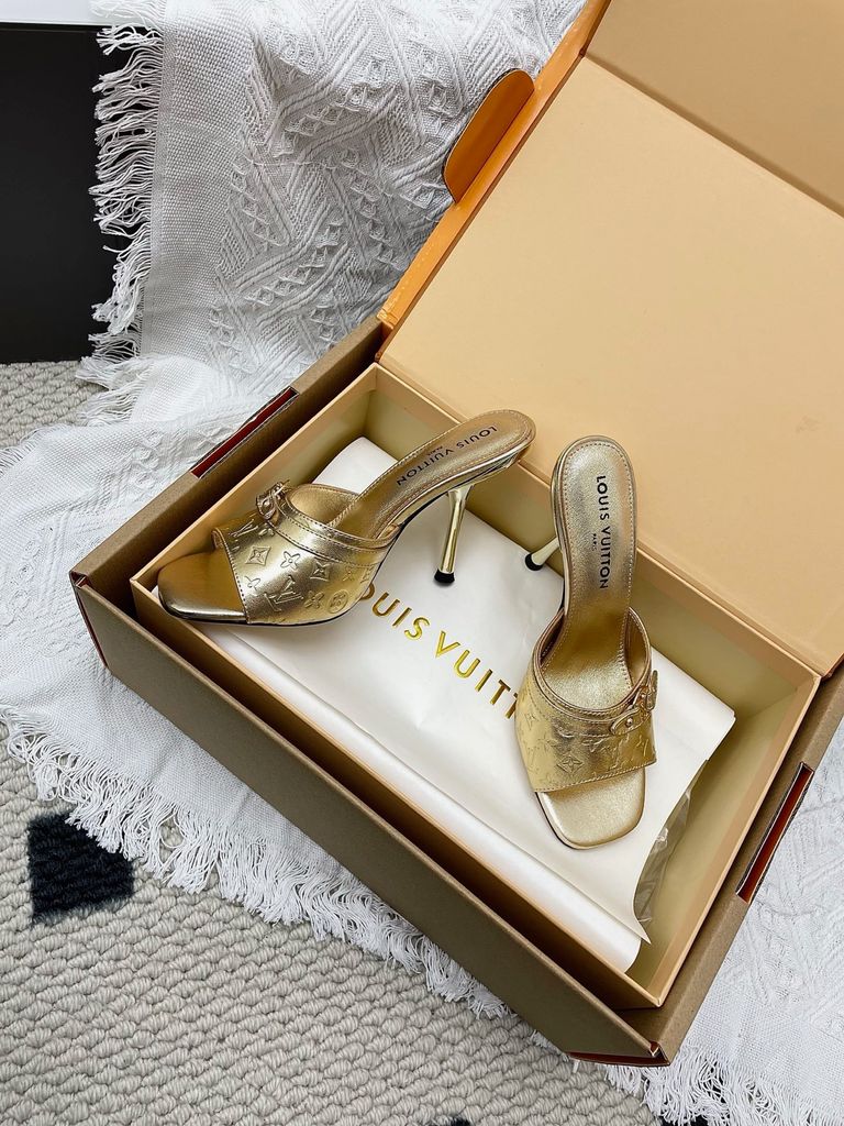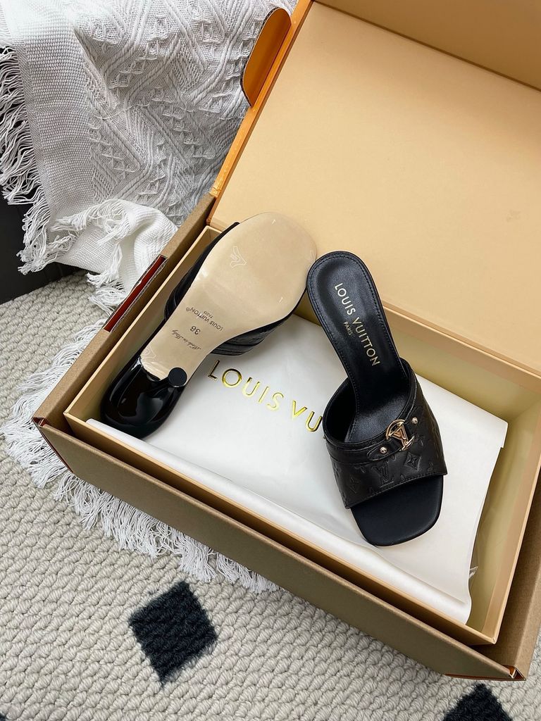 SANDAL CAO GÓT NỮ L V 6AM DẬP VÂN MẮT MÈO & HOA NỔI – DÁNG MULE TÔN DÁNG SANG 1850K (HÀNG ORDER QUỐC TẾ)