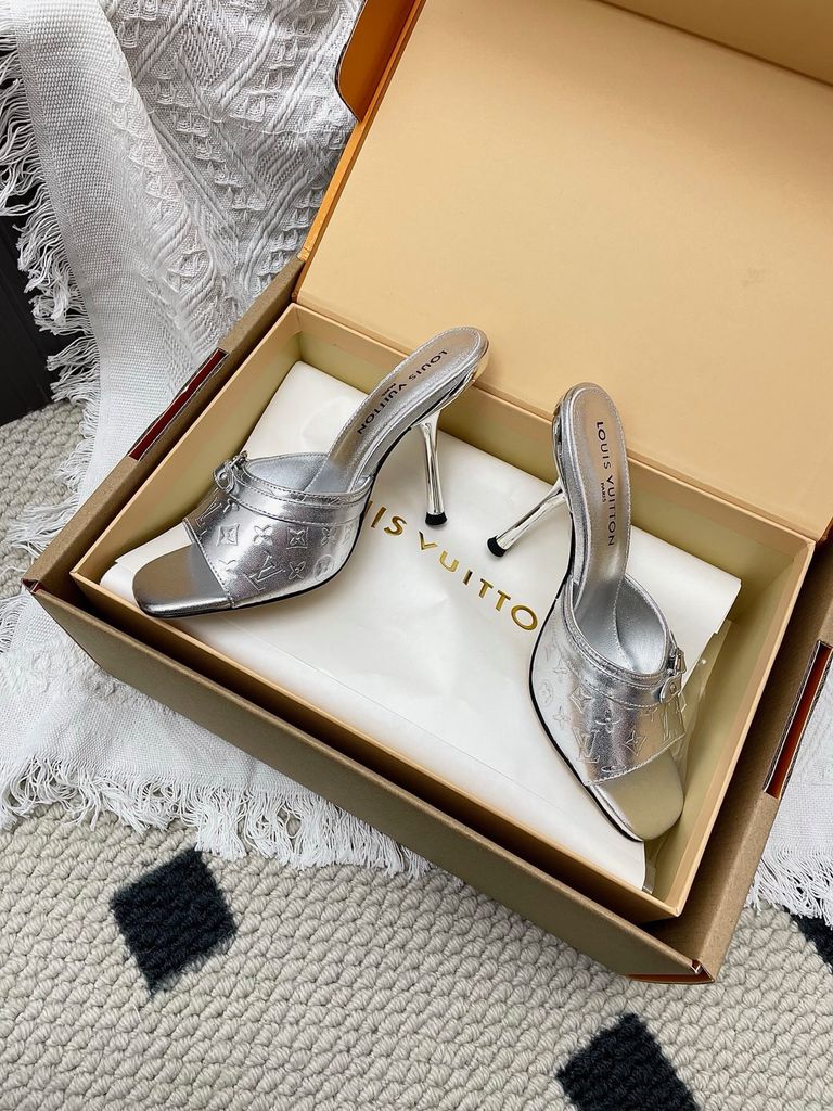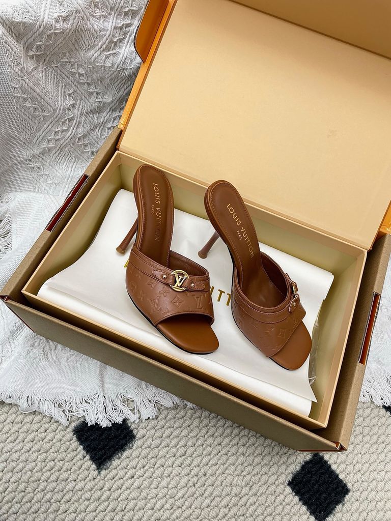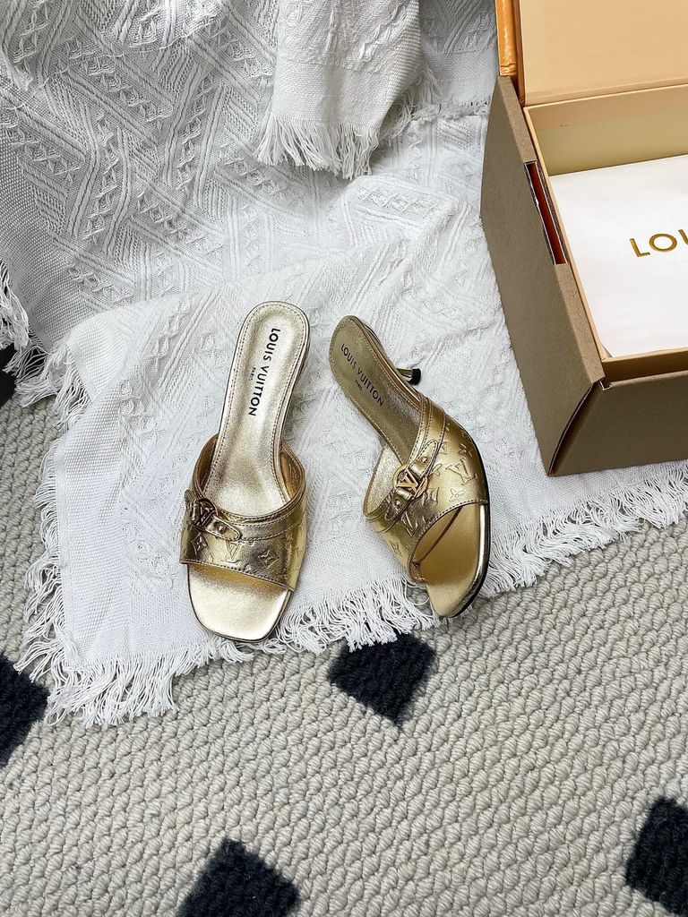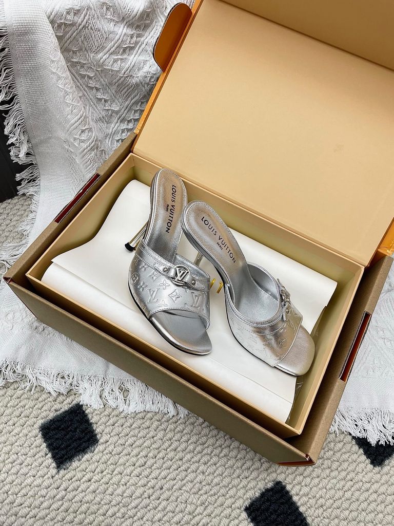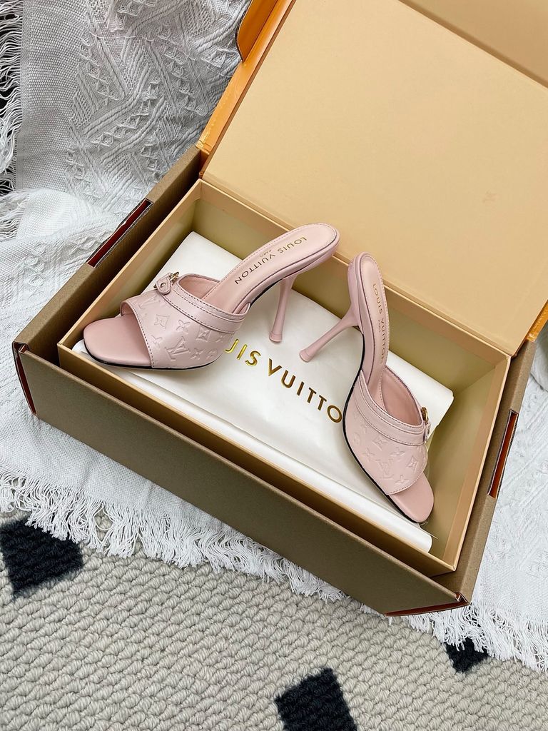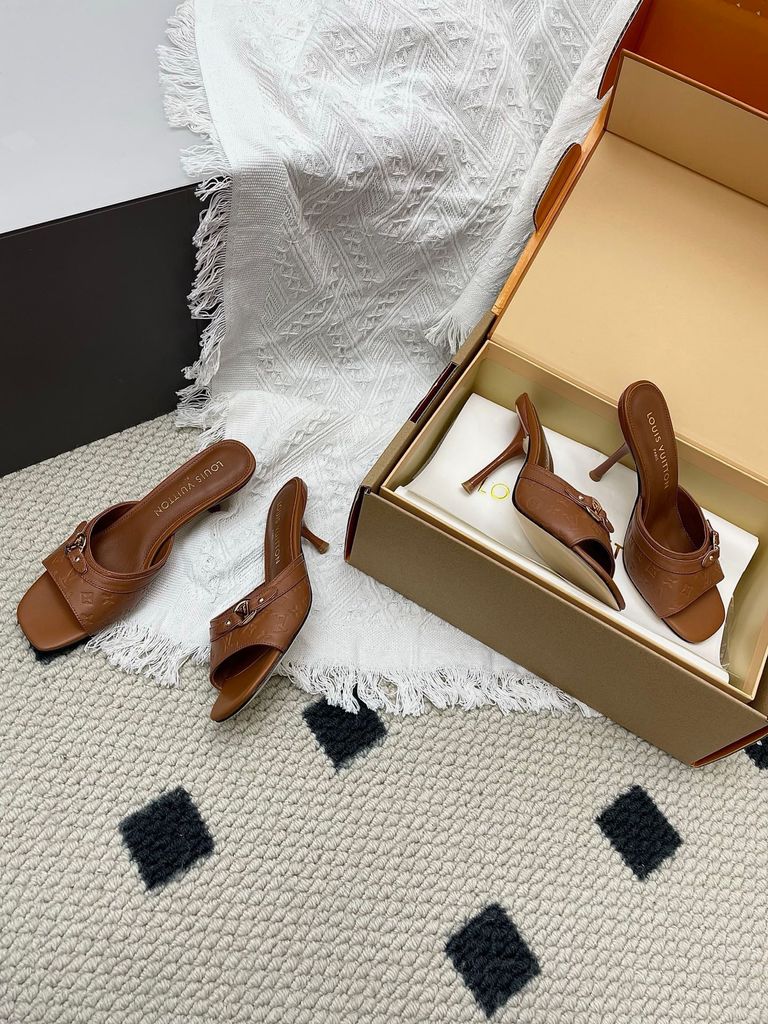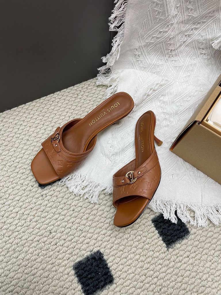 SANDAL CAO GÓT NỮ L V 6AM DẬP VÂN MẮT MÈO & HOA NỔI – DÁNG MULE TÔN DÁNG SANG 1850K (HÀNG ORDER QUỐC TẾ)