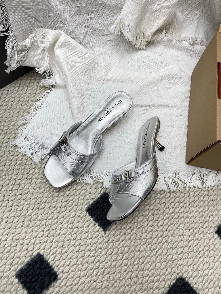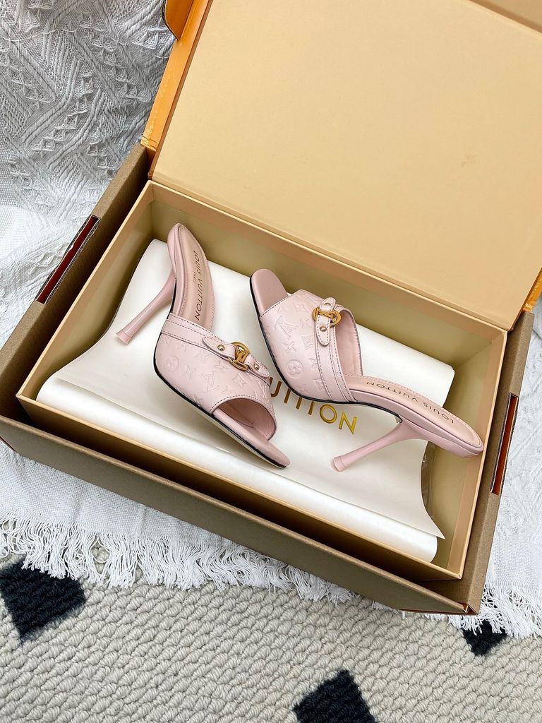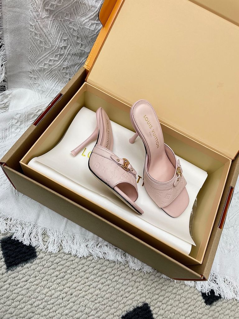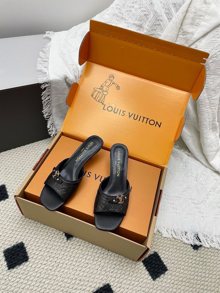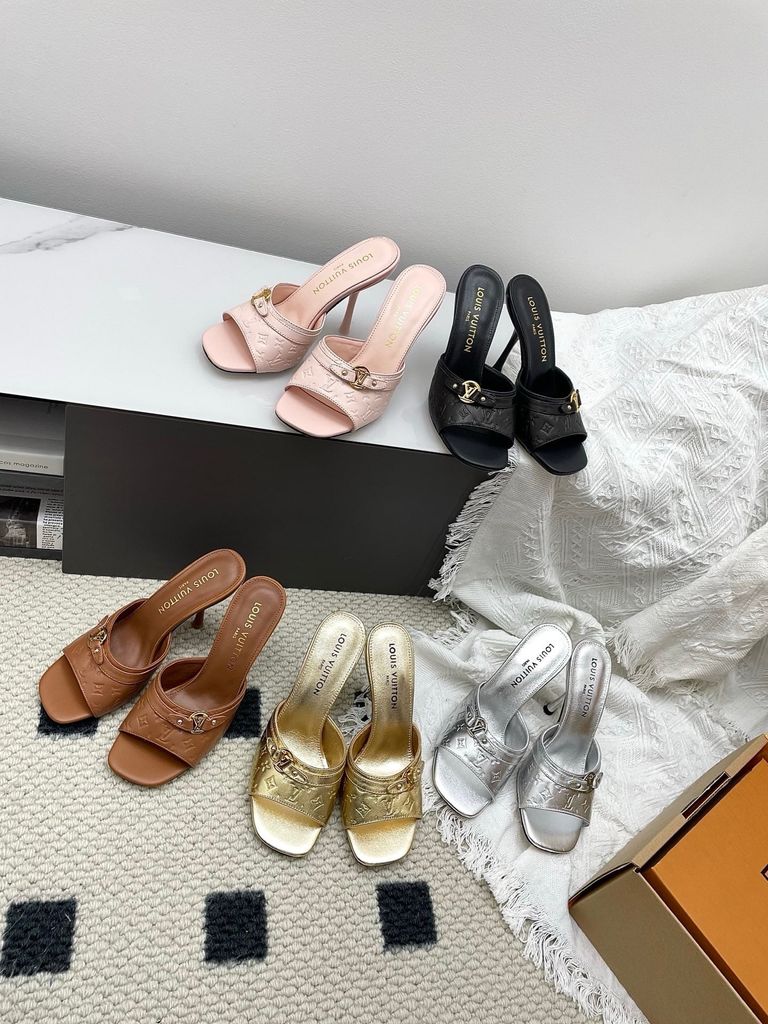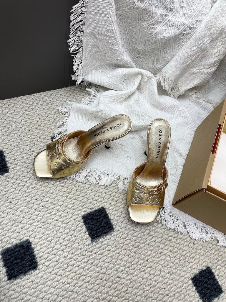 SANDAL CAO GÓT NỮ L V 6AM DẬP VÂN MẮT MÈO & HOA NỔI – DÁNG MULE TÔN DÁNG SANG 1850K (HÀNG ORDER QUỐC TẾ)