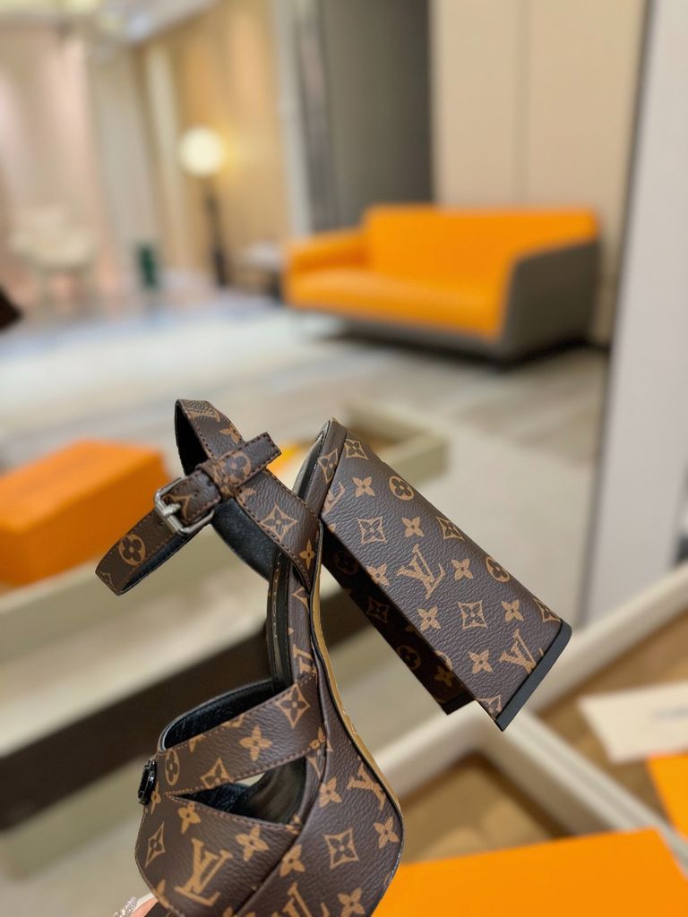 SANDAL CAO GÓT NỮ LV* MONOGRAM – GÓT VUÔNG 12CM, PLATFORM 3.5CM 1800k