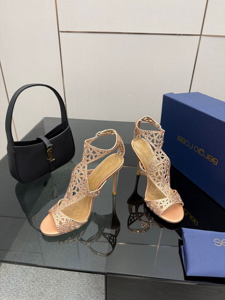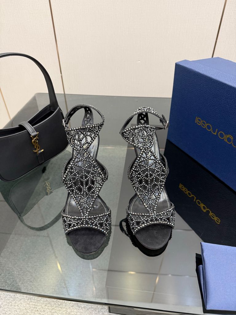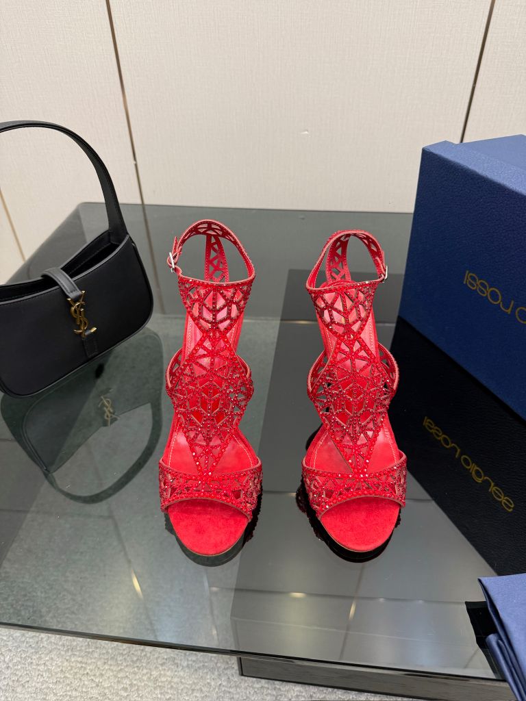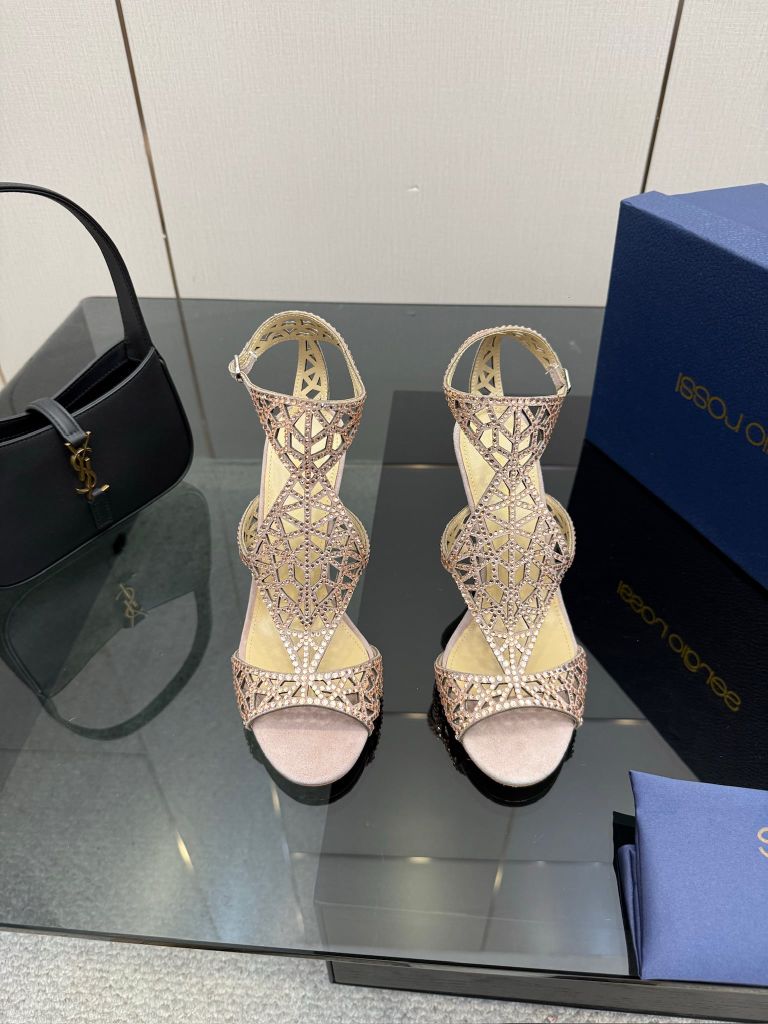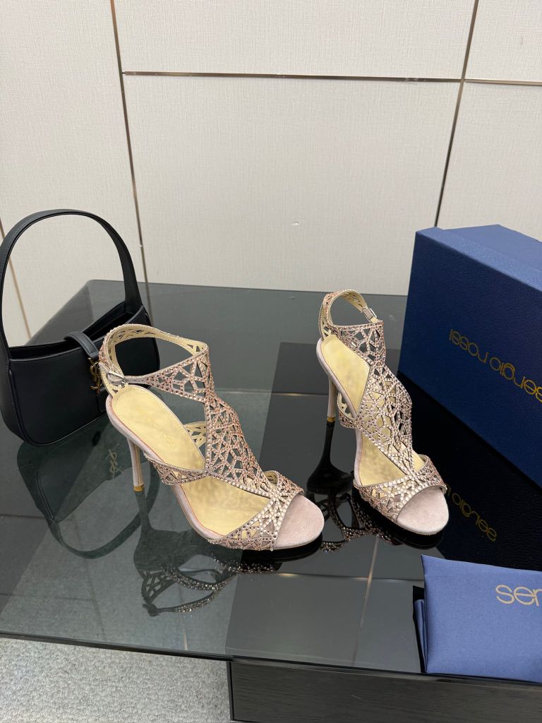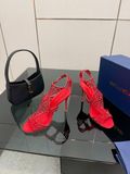 Một phiên bản sandal cao gót gây ấn tượng mạnh bằng cấu trúc lưới đính đá thủ công đầy tính trang sức, tôn bàn chân thanh thoát và nổi bật ngay từ ánh nhìn đầu tiên.
