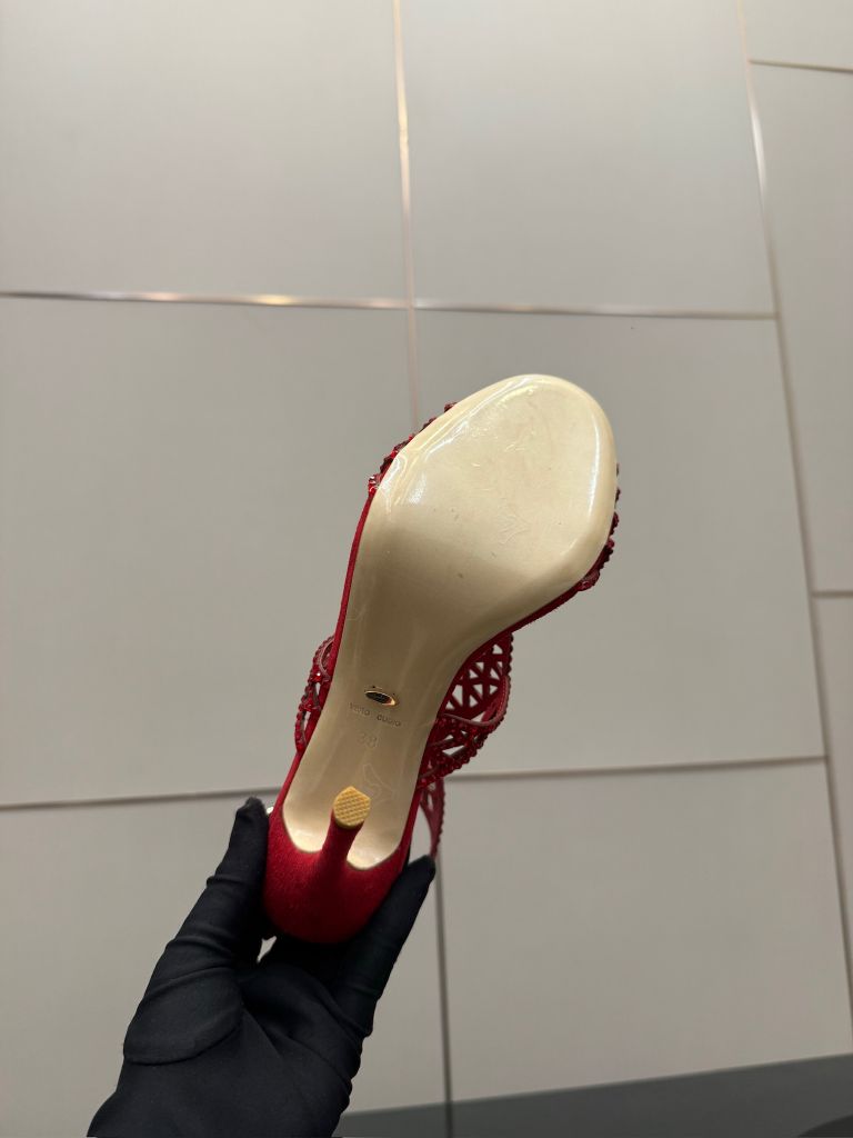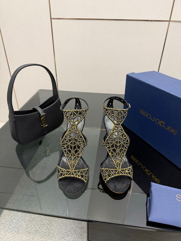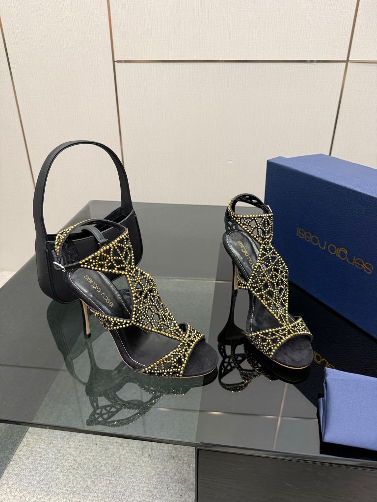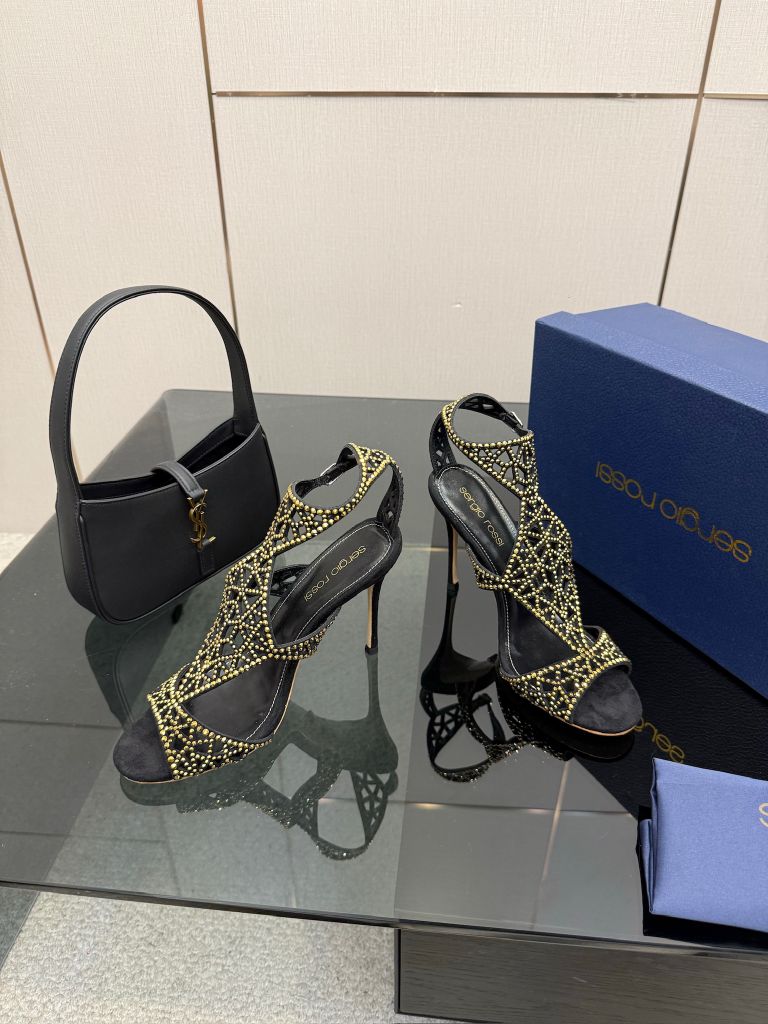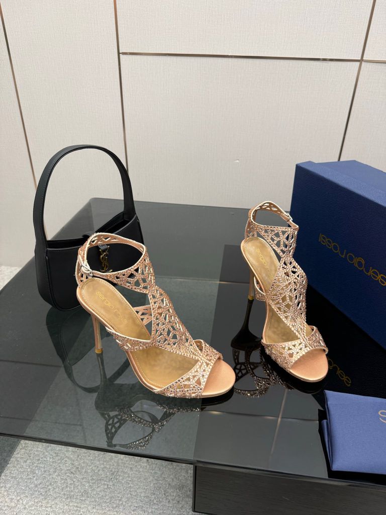 Một phiên bản sandal cao gót gây ấn tượng mạnh bằng cấu trúc lưới đính đá thủ công đầy tính trang sức, tôn bàn chân thanh thoát và nổi bật ngay từ ánh nhìn đầu tiên.