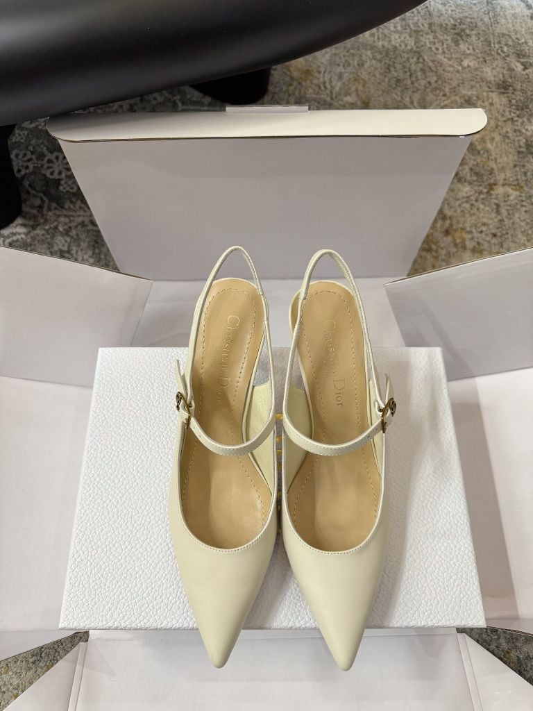 • Quai slingback mảnh ôm gót tinh tế, đi kèm khóa kim loại nhỏ tạo điểm nhấn “nhẹ mà có lực”, giúp tổng thể trông rất thời thượng.