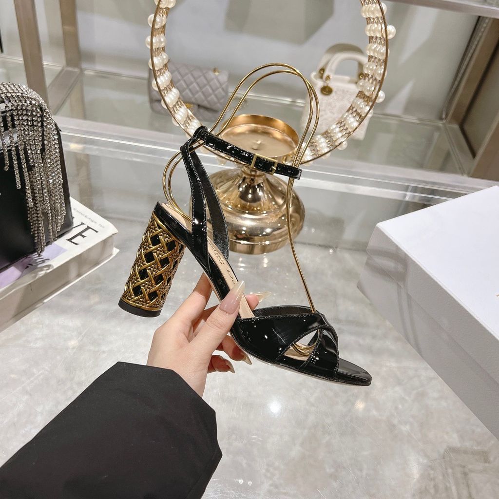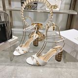 • Gót trụ tròn với hoạ tiết chữ cái đan nổi: điểm nhấn signature, nhìn là nhận ra