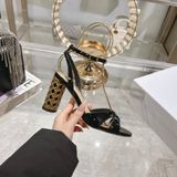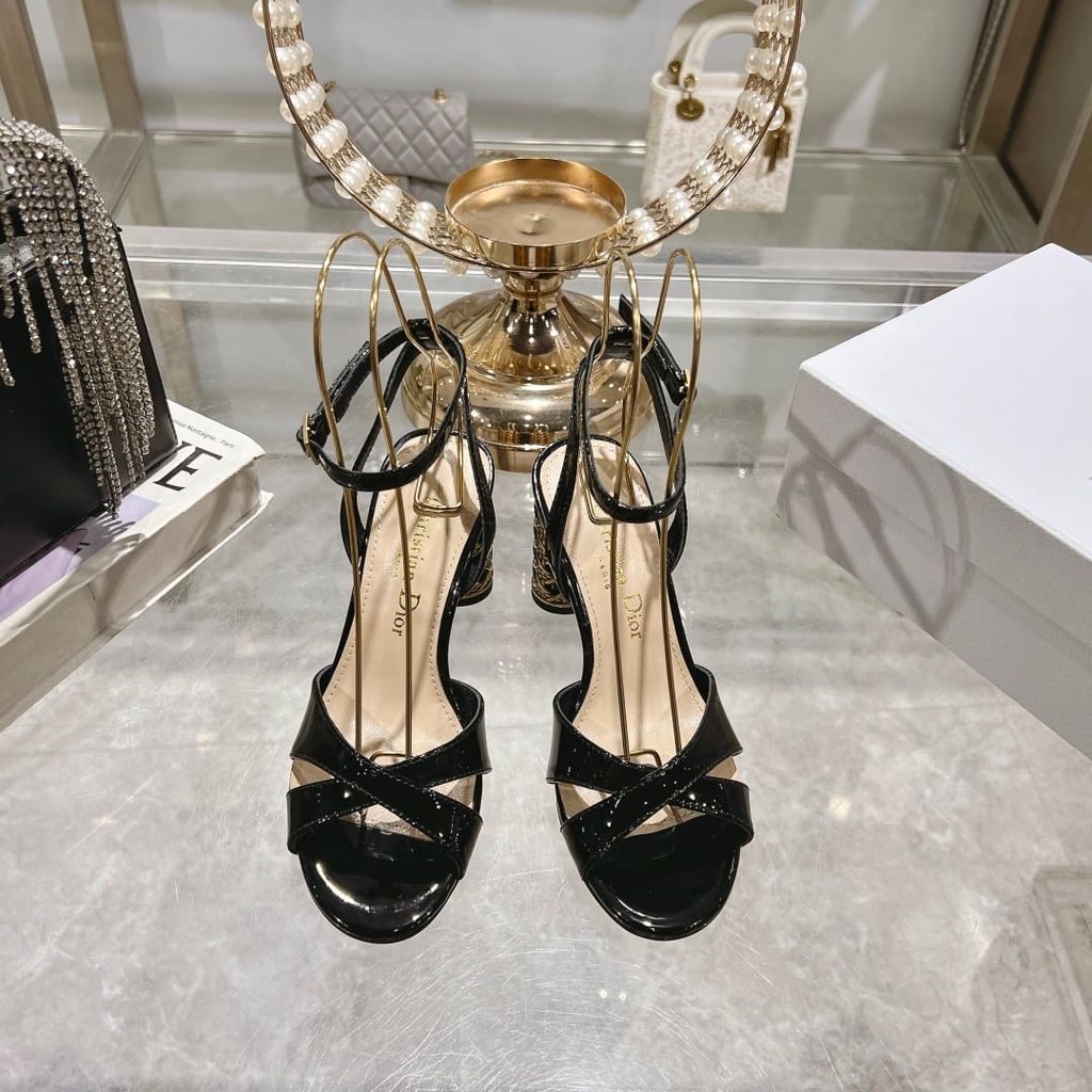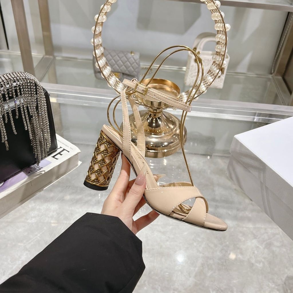 SANDAL CAO GÓT NỮ DR QUAI CHÉO CHỮ X – GÓT TRỤ LOGO ĐAN NỔI 8CM 1550K (HÀNG ORDER QUỐC TẾ)