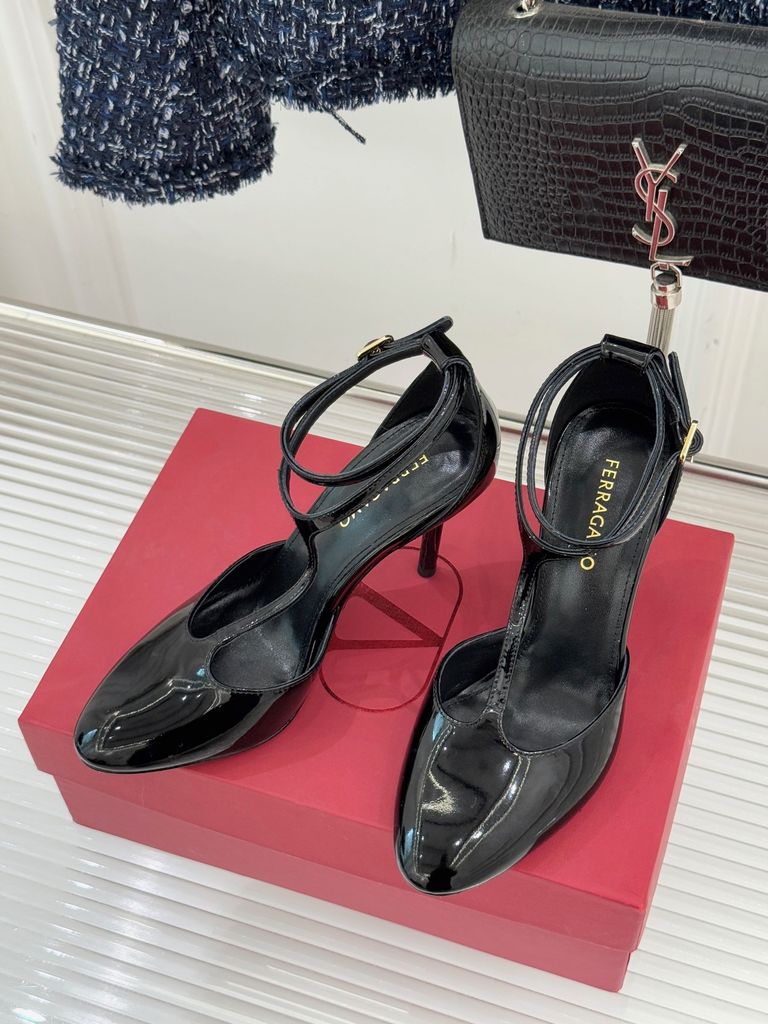 SANDAL CAO GÓT NỮ FRG* DÂY T-STRAP SƠN BÓNG THANH THOÁT – TÔN DÁNG QUÝ PHÁI GÓT 8CM 1750K (HÀNG ORDER QUỐC TẾ)