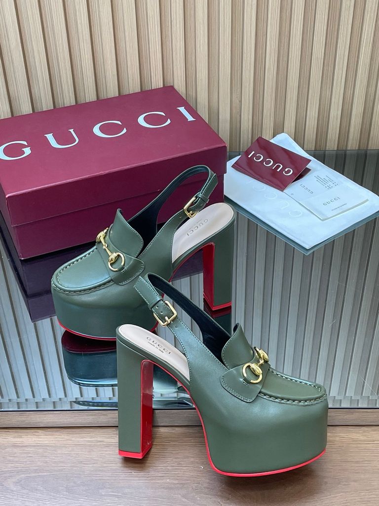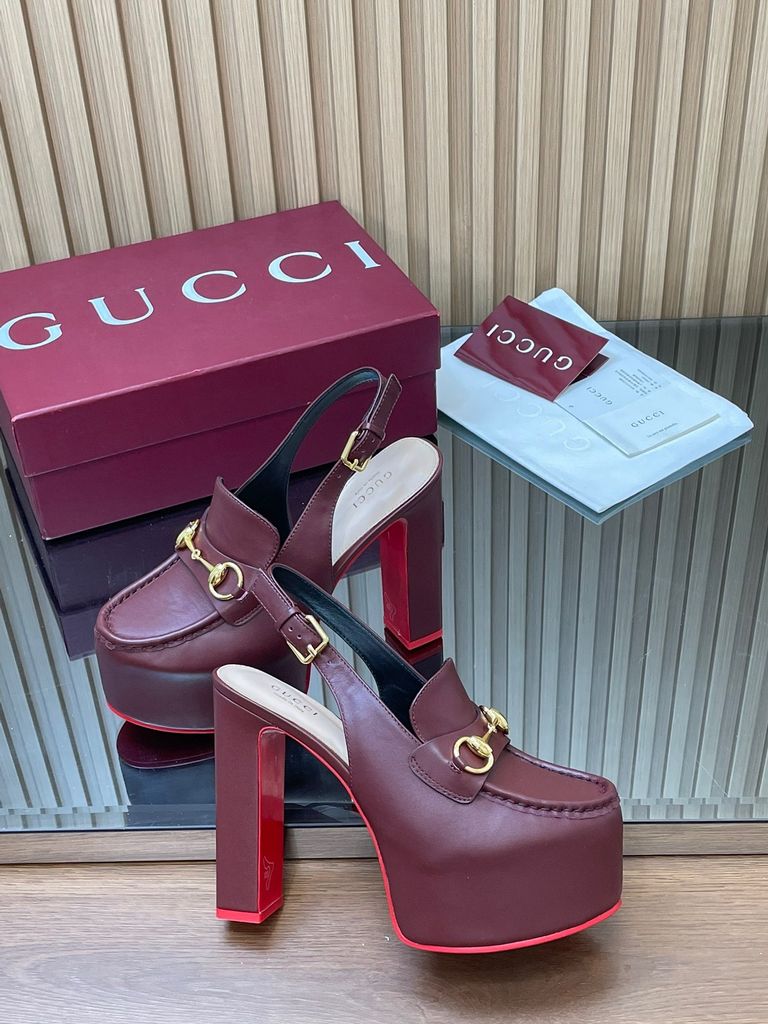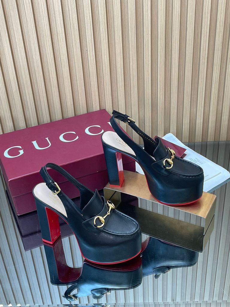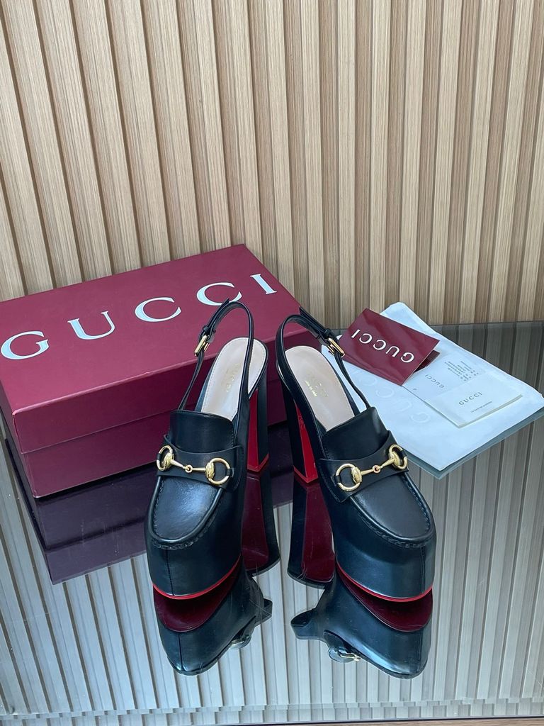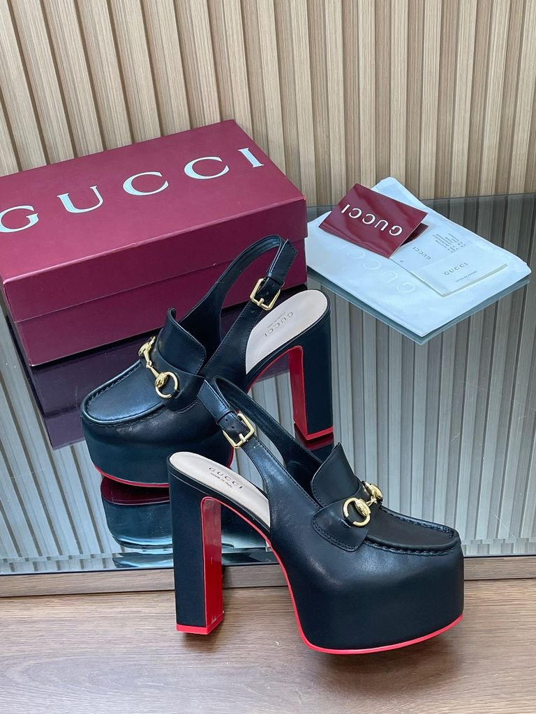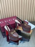 SANDAL CAO GÓT NỮ GC HORSEBIT PLATFORM GG DẬP NỔI DÁNG LOAFER SLINGBACK GÓT 14CM