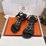 SANDAL CAO GÓT NỮ LP GÓT 5CM DA DẬP VÂN ĐÀ ĐIỂU KHÓA TREO BIỂU TƯỢNG PHIÊN BẢN MULE CỔ ĐIỂN 1550K (HÀNG ORDER QUỐC TẾ)