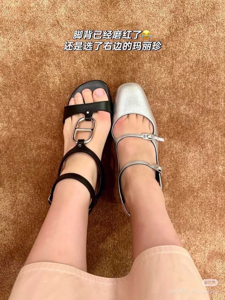 • Dáng sandal quai chữ T giúp tổng thể bàn chân nhìn thon gọn, đường nét rất “clean” và hiện đại