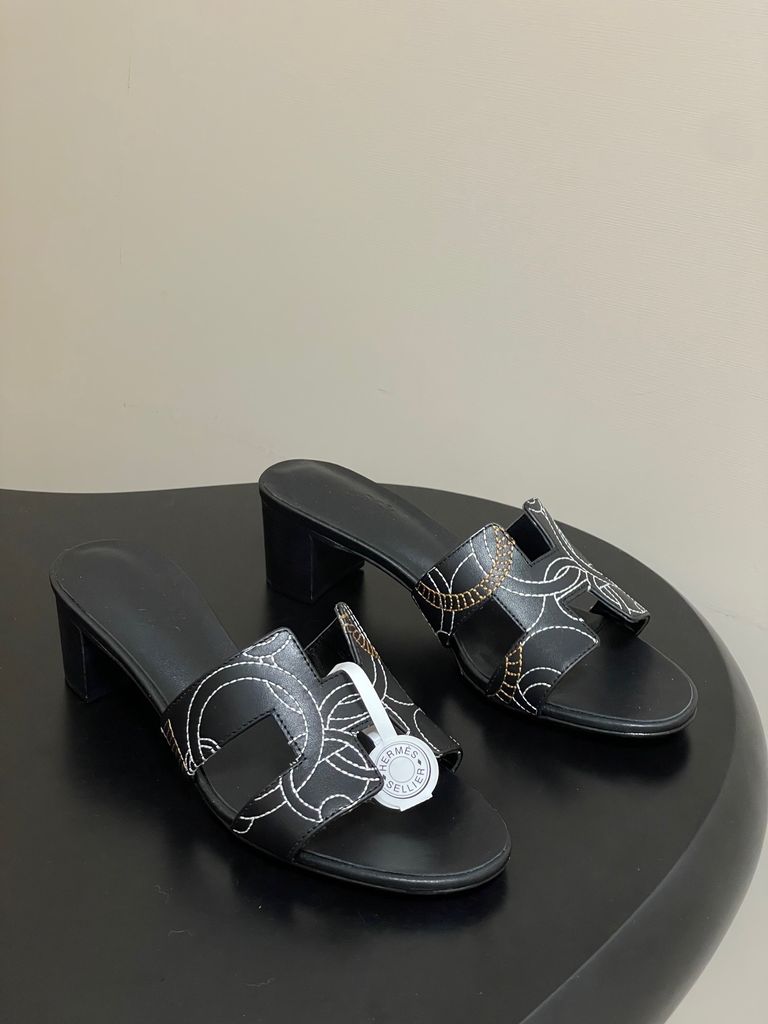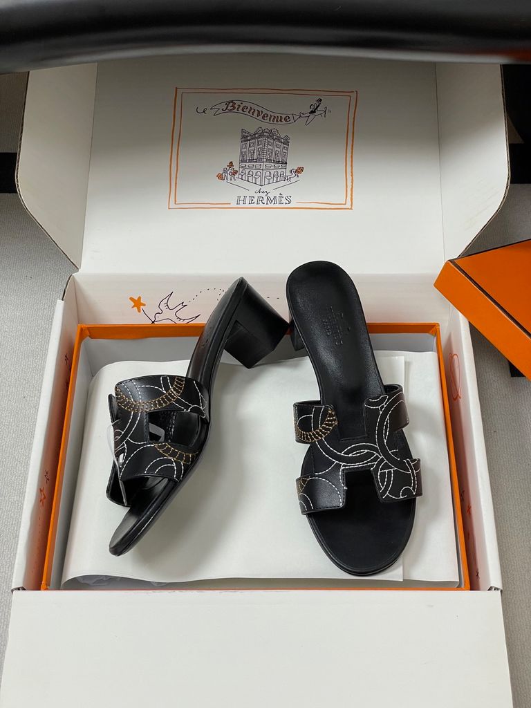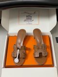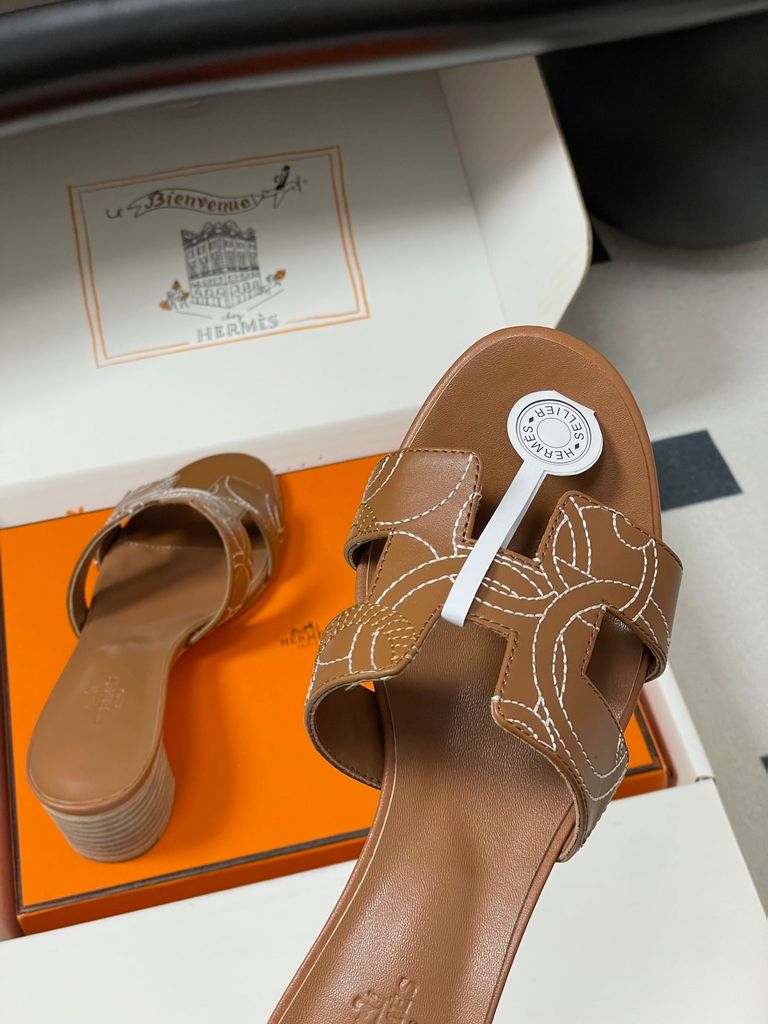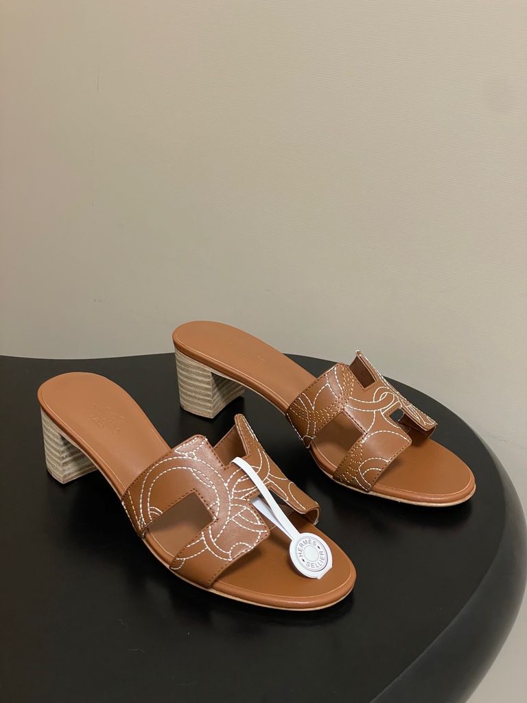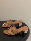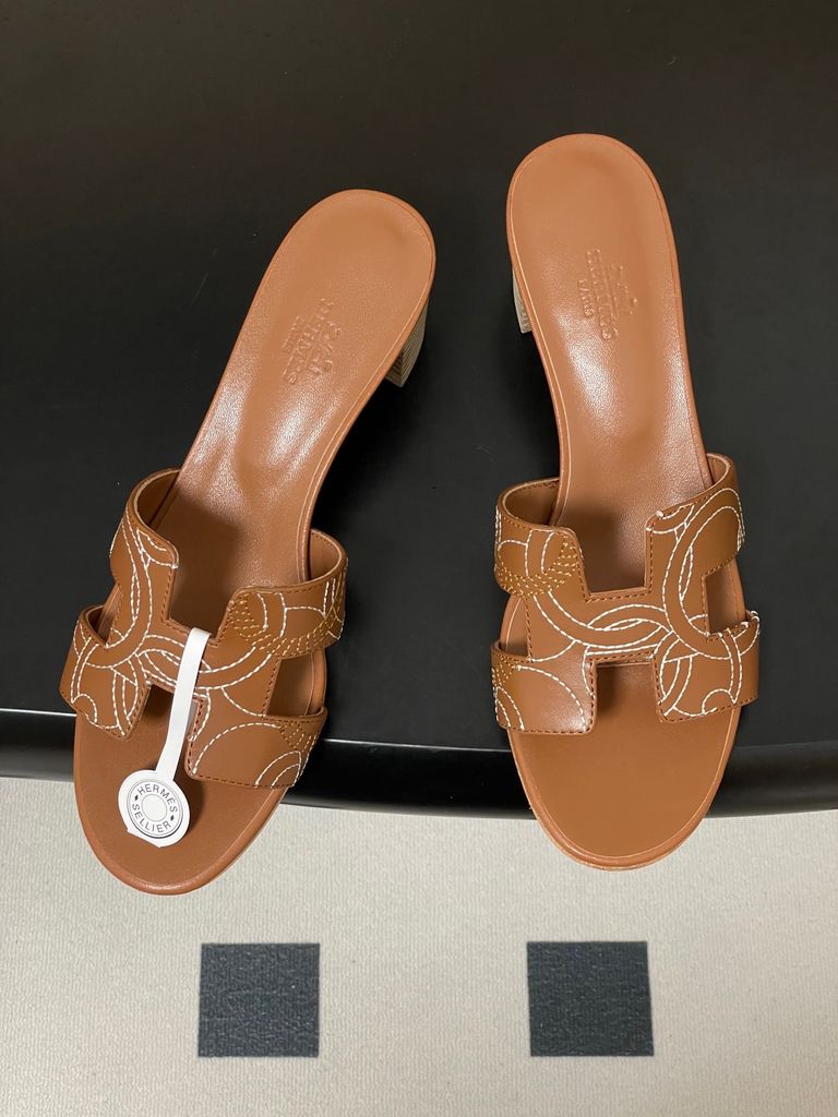 SANDAL CAO GÓT NỮ HERM* DÁNG MULE H-CUT, DA BÒ NÂU, GÓT 5CM 1750k (HÀNG ORDER QUỐC TẾ)