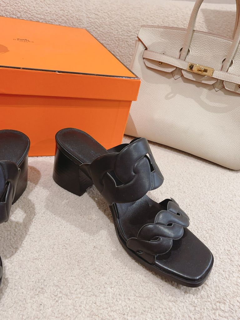 SANDAL CAO GÓT NỮ HERM* DÂY GABY DA ĐAN ĐEN ĐỒNG 6CM 1990k (HÀNG ORDER QUỐC TẾ)