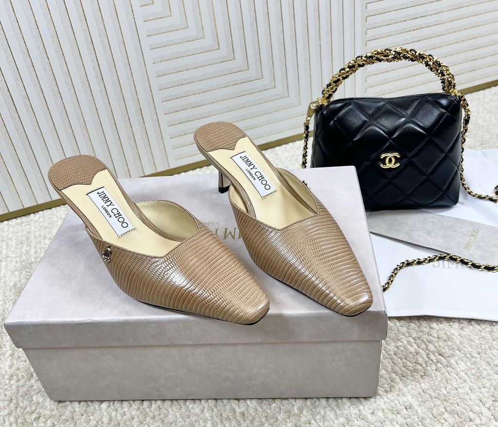 GIÀY SỤC NỮ JIMMY* CHOOO* * MŨI VUÔNG THANH LỊCH – GÓT 6.5CM VÂN THẰN LẰN 1750k