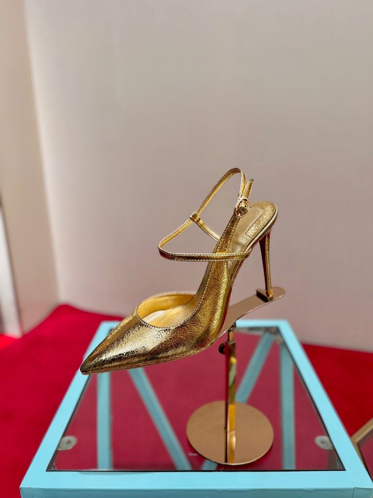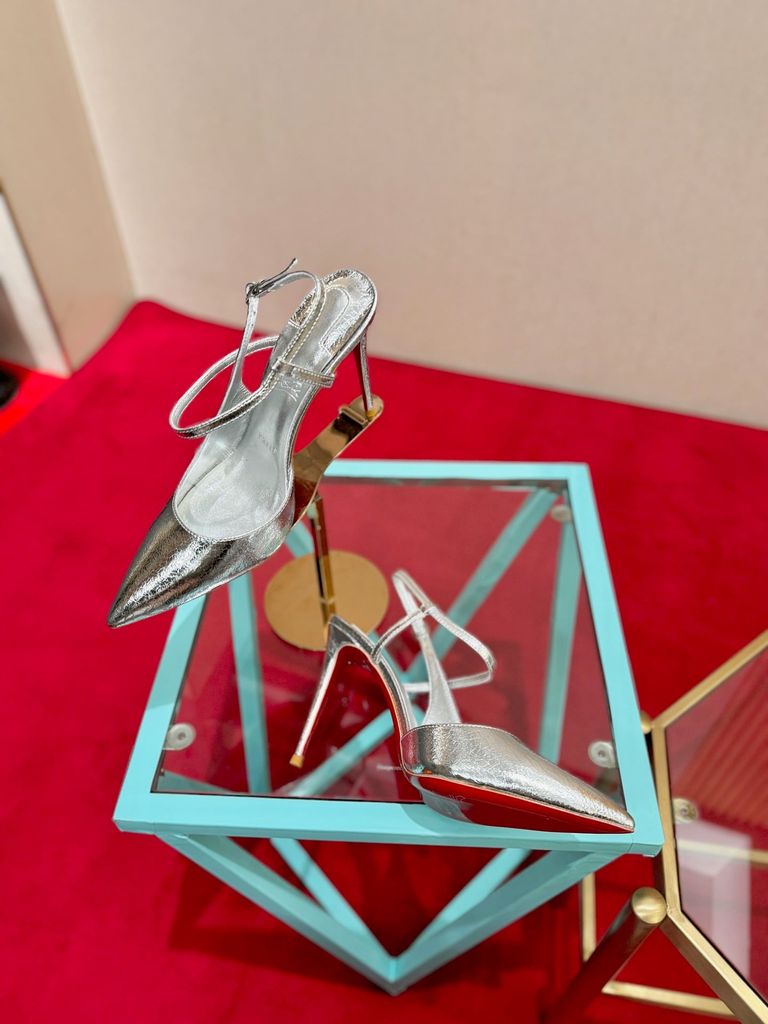 Một phiên bản slingback mang tinh thần thanh lịch rất rõ, nổi bật với mũi nhọn sắc nét, thân lưới mỏng phủ đính đá và gót cao thanh mảnh, tạo hiệu ứng lên chân vừa nhẹ mắt vừa cuốn hút. Dòng slingback của nhà mốt này cũng được định vị theo phong cách refined elegance, với các chi tiết mũi nhọn, crystal embellishment và phom gót cao là những dấu ấn nổi bật.