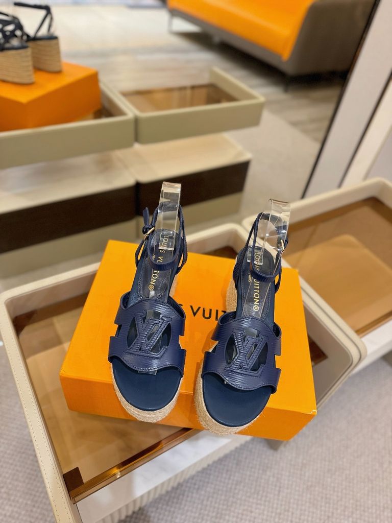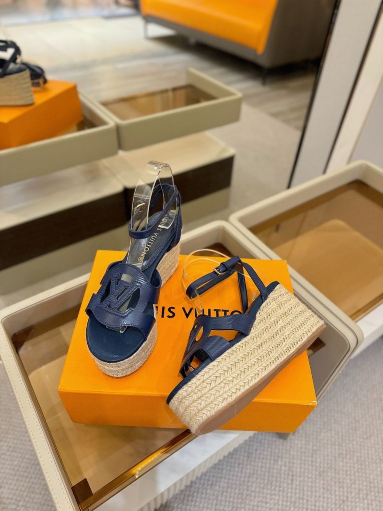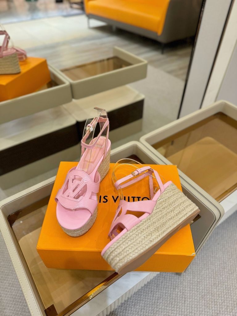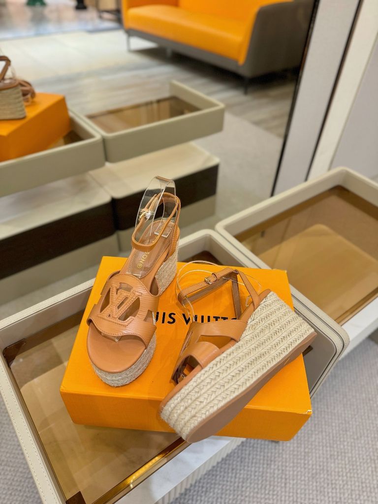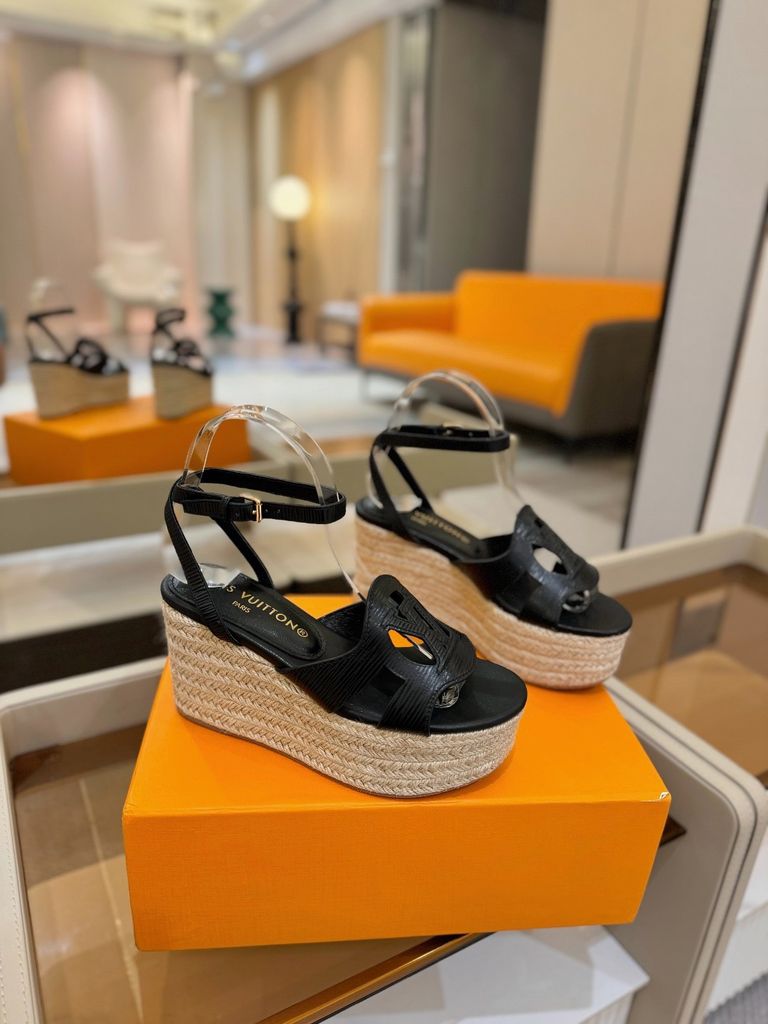 SANDAL ĐẾ XUỒNG NỮ LV* ESPADRILLE TRẮNG – LOGO CẮT TINH XẢO 2000k