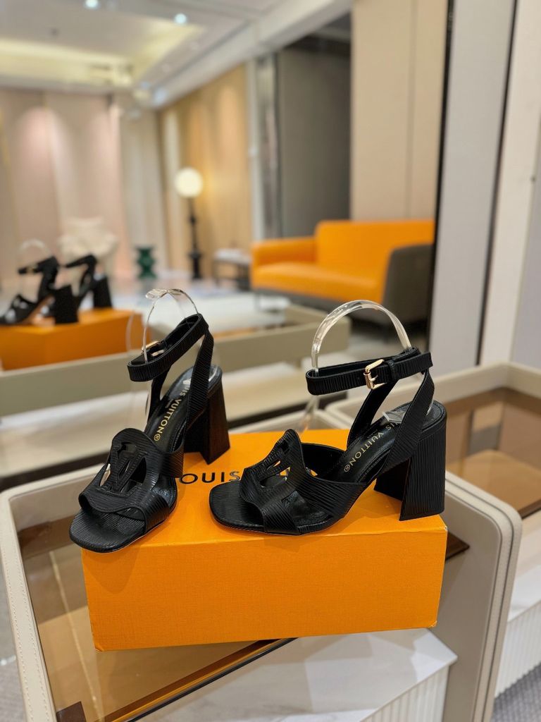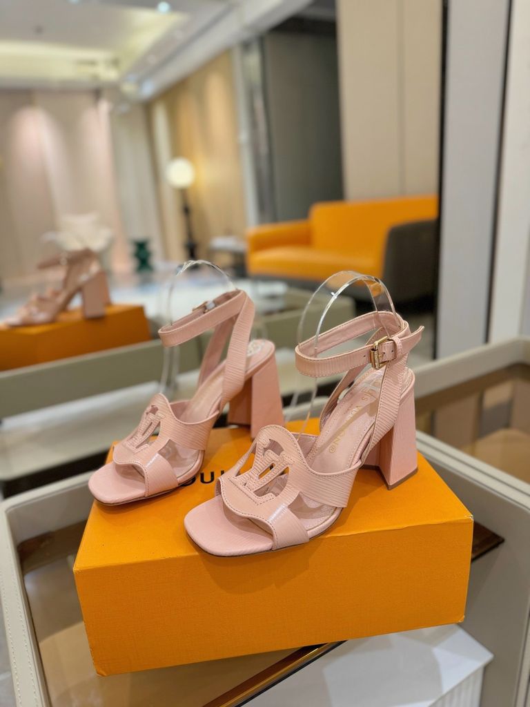 SANDAL CAO GÓT NỮ LV* – DA VÂN NỔI CAO CẤP, GÓT KHỐI 9CM 1850k