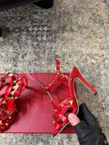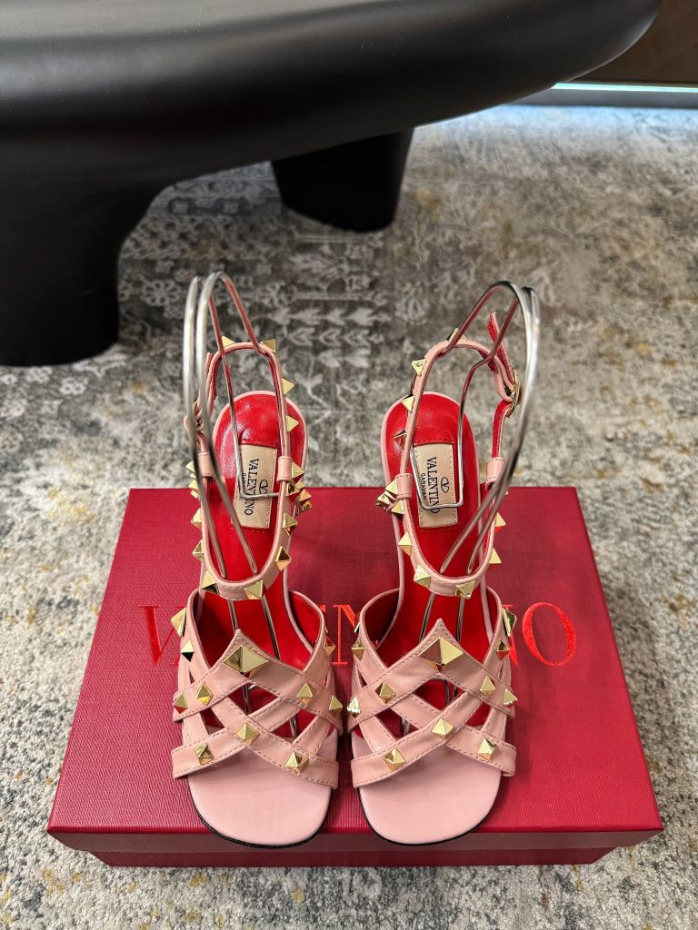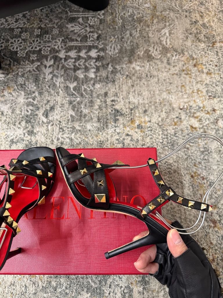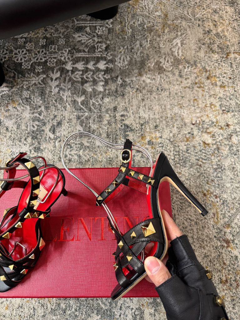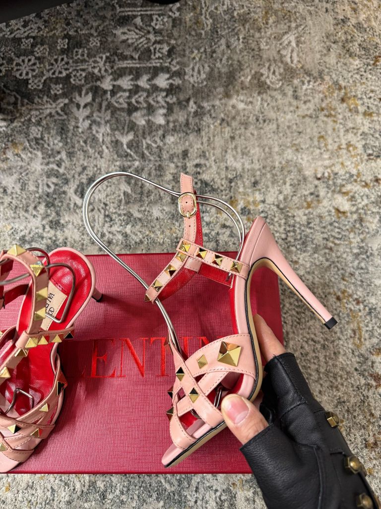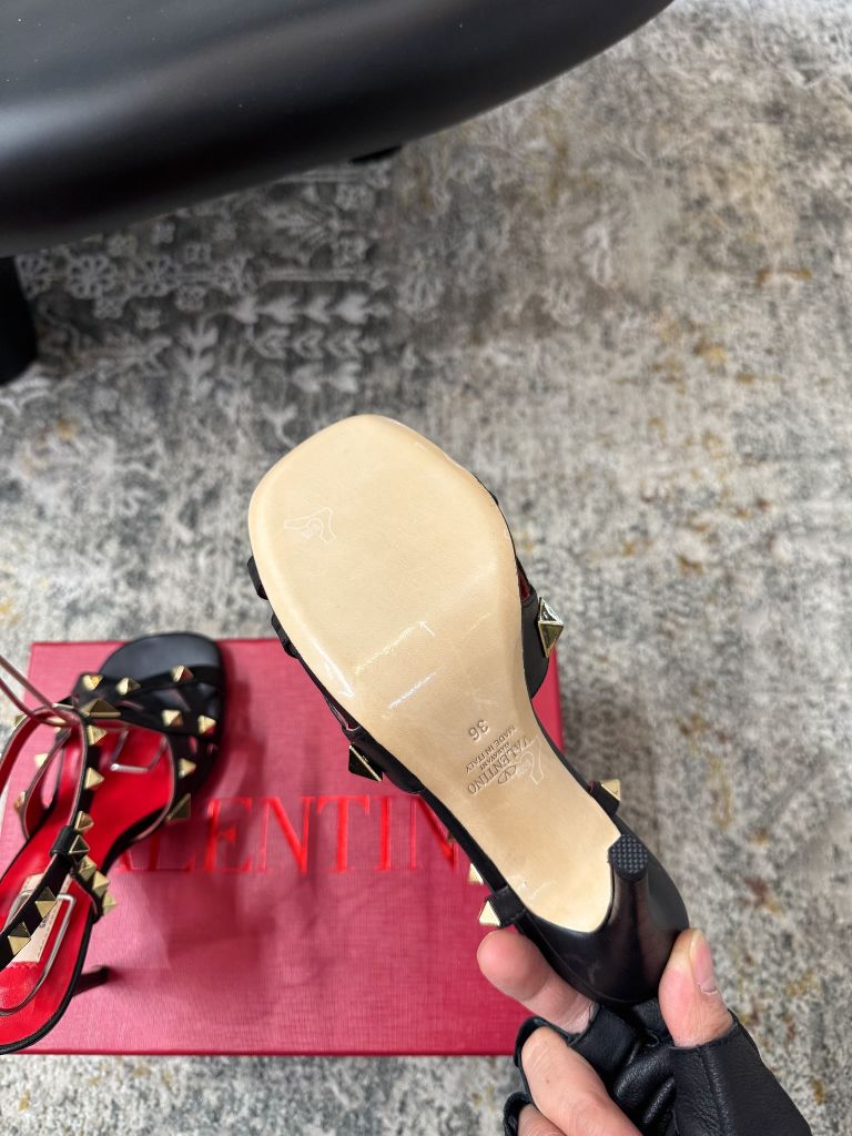 SANDAL CAO GÓT NỮ VLTN ĐINH TÁN PYRAMID SIGNATURE – DÂY QUẤN CỔ CHÂN TÔN DÁNG